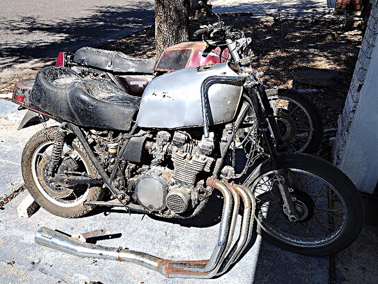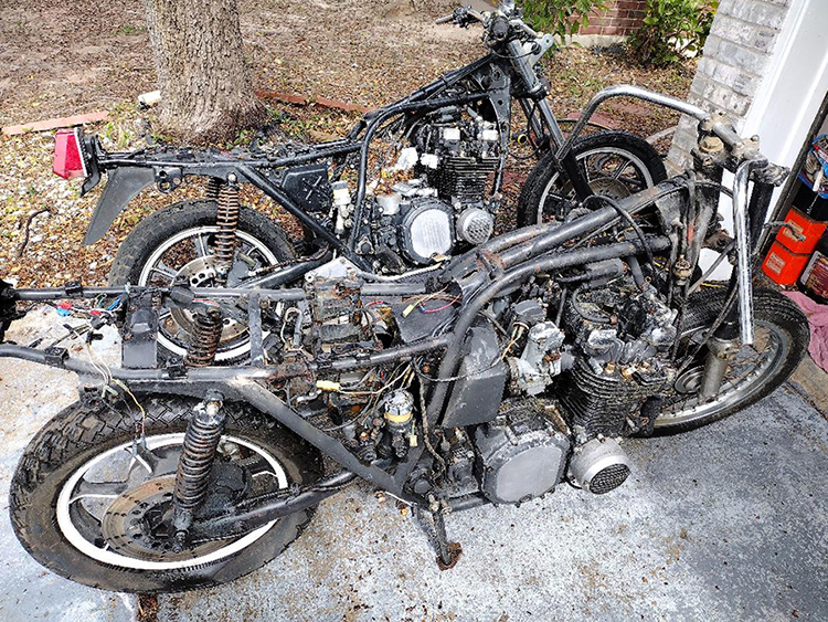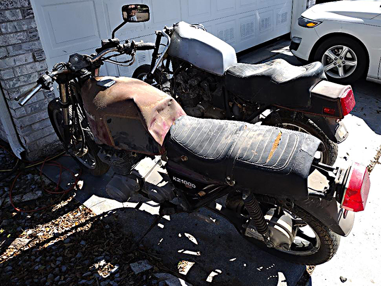 Picked these up over the weekend. Started pulling parts off of the parts bike, which is the one with the spoke front wheel. Pressure washed them to get some of the grime off.