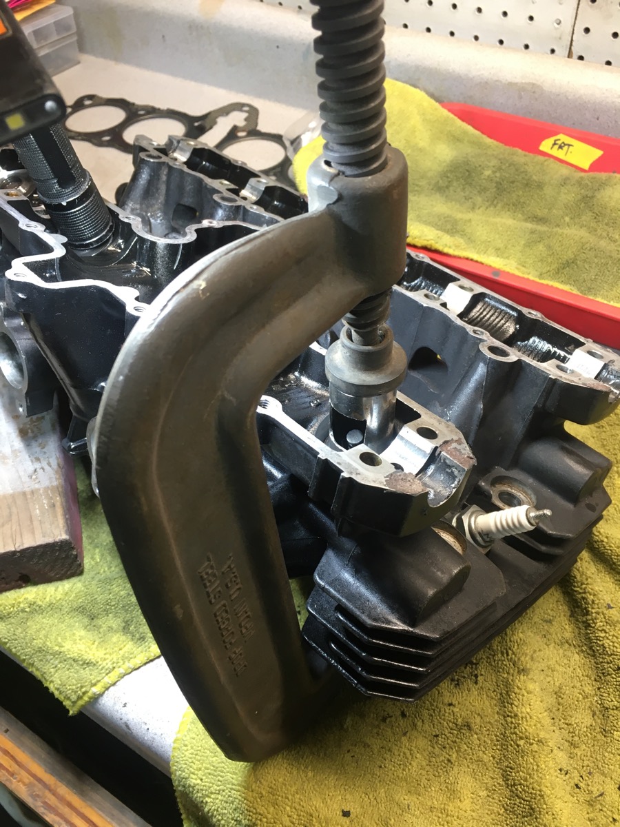 Well got her to start up, but we have carb issues...of course. Revs on its own once it gets off the pilot circuit it seems...lean issue possible or vaccuum leak. I probably should have replaced the throttle shaft bushings...damn it. Also she seems sluggish. So I wanted to do a compression check, since I didnt recheck once I did the valve replacement. Sure enough, compression was low still, 105 pounds versus where it should be 150 so I squirted oil down the cylinders and BOOM, compression was up to 150...damn it again. Looks like Ill have to tear it apart again to see whats up in those cylinders!
