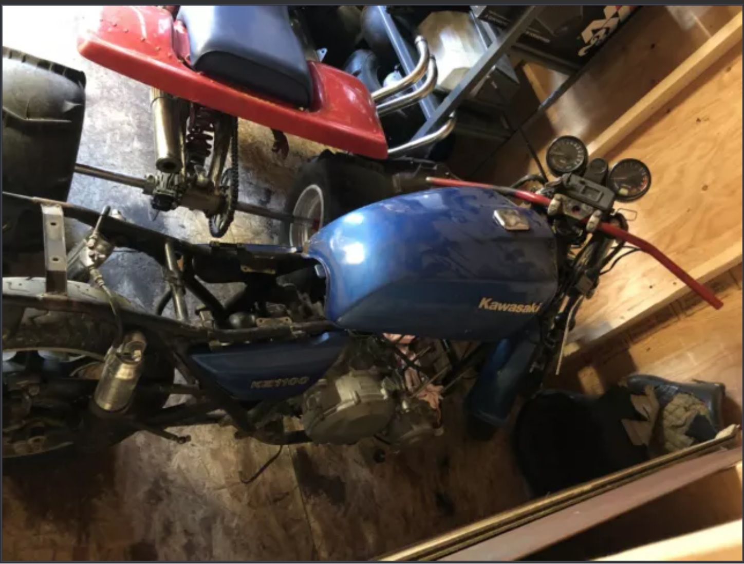 About a month ago I came across a KZ1100 being advertised to sell. It was half taken apart, bits and pieces in bags and boxes. Apparently it had been sitting under a tarp for 20 years.