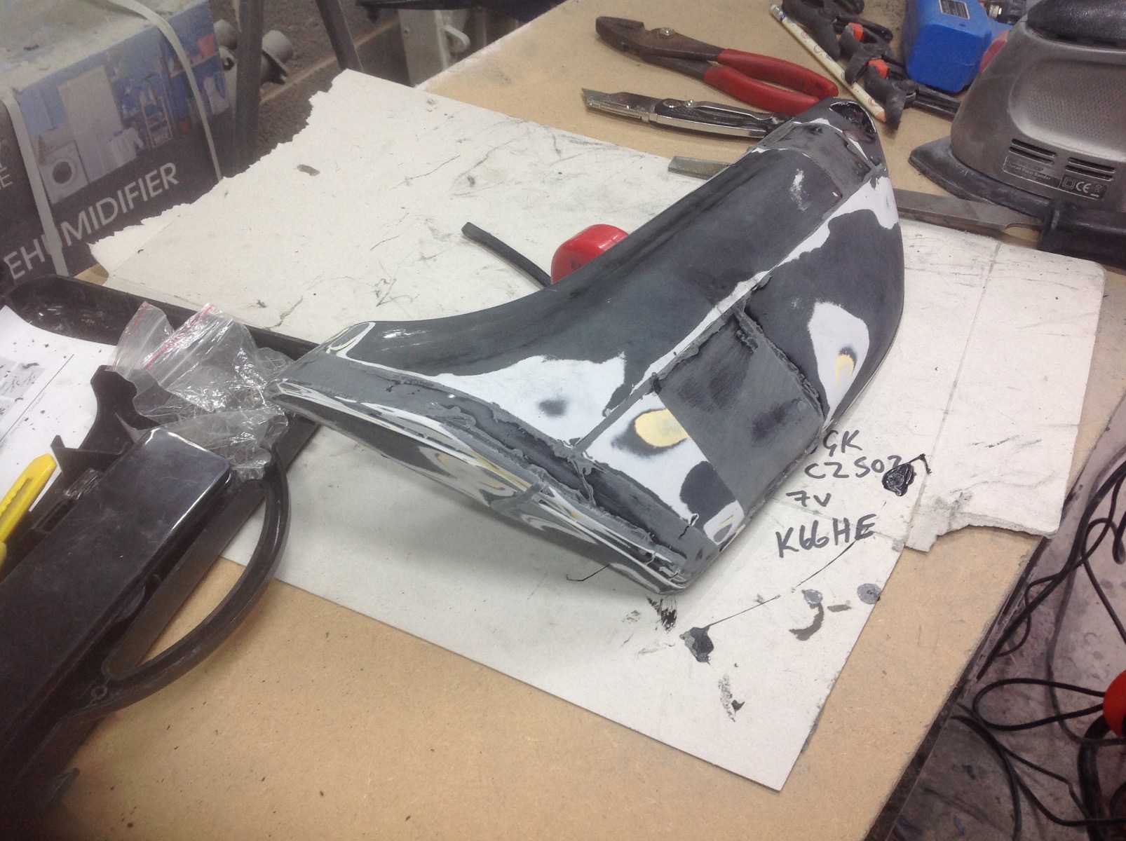 I have then painted over all the joints from the back with "gloop" ( scraps of ABS plastic disolved in acetone to make a paste) the acetone eats into the surface of the plastic to make a permanent bond ( it's like adding another layer of plastic) just needs a light skim of bondo and some mounts now