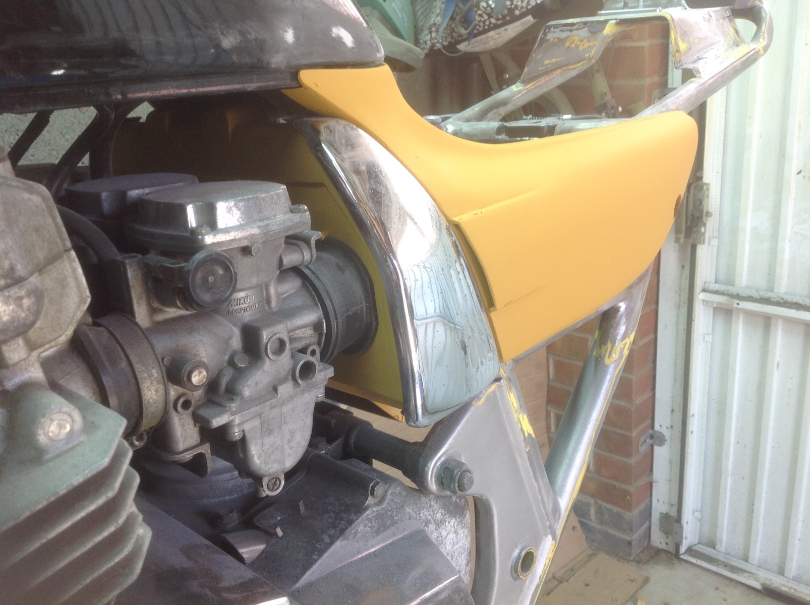 08 May 2023 00:57Thanks for the feedback Kelly, I think the 70's bikes like yours look "spot on" as is. My issue was that the tailpiece doesn't belong on an 82 and I have reshape the ugly stock side panels. When this is coupled with the tight fitting seat it just didn't look "finished" to me. I think it is real easy to go down a rabbit hole when building something that you don't want to look "DIY"My factory gap is huge, yours looks too flowing and tied in for the vintage of the bike. I see it looking similar to stock but with a much closer gap. Like 3mm to 5mm gap between the tank and side panel
