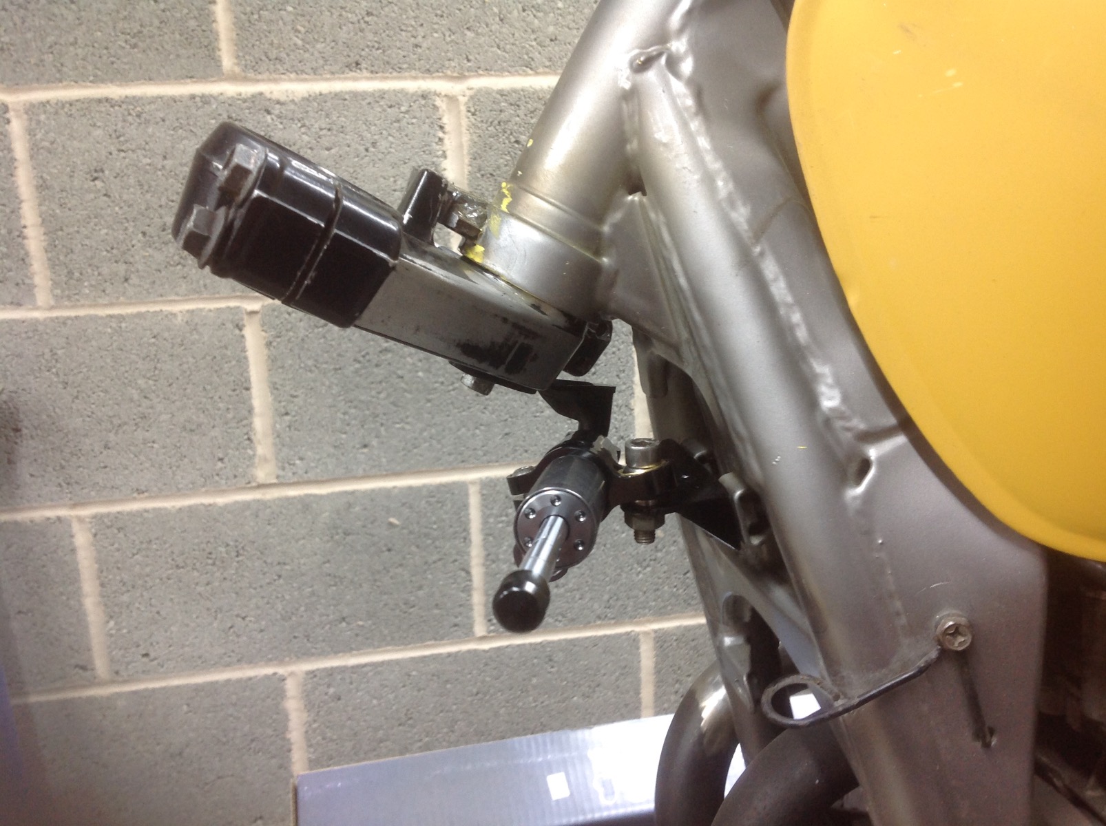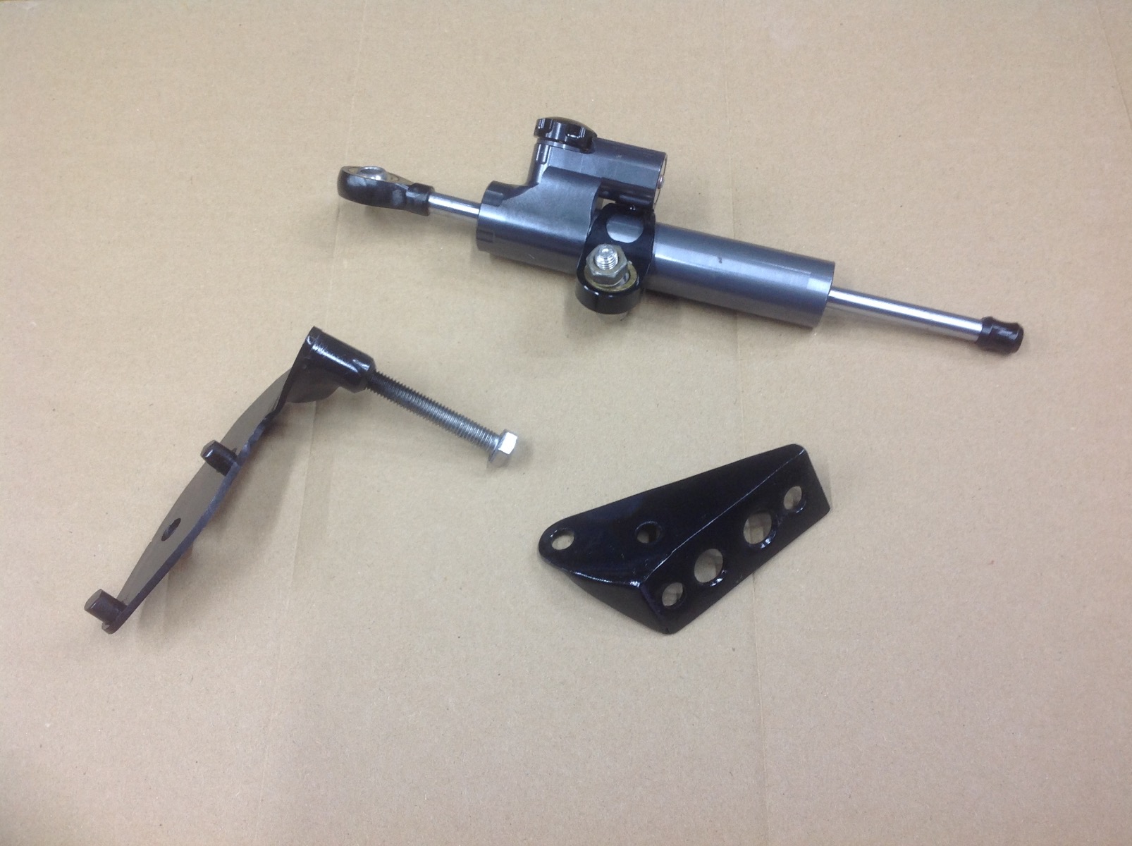 Staying at the front I wanted to fit a steering damper (with the amount of mods there is always the possibility of stability issues) as at my age I don't need the excitement of a "slapper" (tank that is as opposed to a loose moraled lady) I didn't want the "sticky out" type which is the norm on older bikes but I also didn't want the type above the top tree used on sports bikes, so what about if you could have the sporty type but discreetly mounted "under the trees"