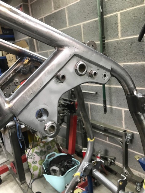 More filing and grinding this weekend, had hoped to be done with this by now (didn't get anything done last weekend as I took Mrs Wookie to the coast for a "chill" weekend) I am starting to fight flash rusting now as the weather changes so may have to compromise. I didn't like the "left" swing arm mount as it's like a "billboard" and looked more "John Deere" than "Kaw" the tube I've welded in is the same diameter and location as the hole in the "bolt on" mount from the other side
