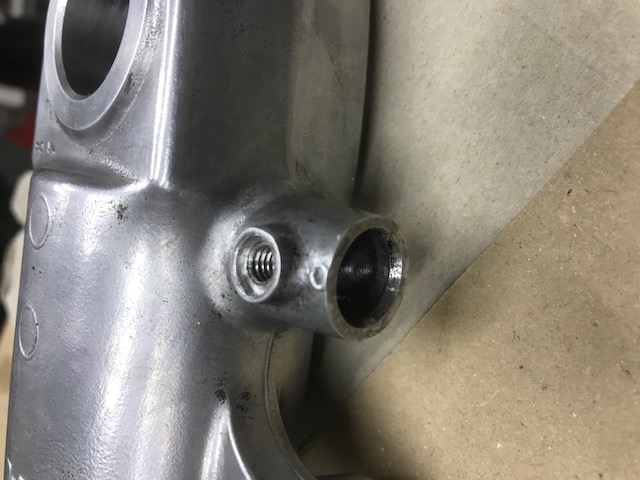 I put a couple of scallops in the cross tube on the frame for the wiring (originally the loom runs under this tube but now I have lifted the airbox it won't fit). The loom may of just fitted between the tube and the tank but I didn't want to find out it wouldn't fit after everything is painted and powder coated. Also as is common the mounting hole for the kick stand bolt was elongated so the bolt fitted "like a dick in a shirt sleeve" so I have sleeved it to be a much closer fit which has removed about 80% of the slop in the kick stand (the sleeve isn't a sloppy fit, I used a step drill to give the weld somewhere to go). Just need to sort a few brackets and the like and make some blanking plugs for the frame and it will be "off to the powder coater