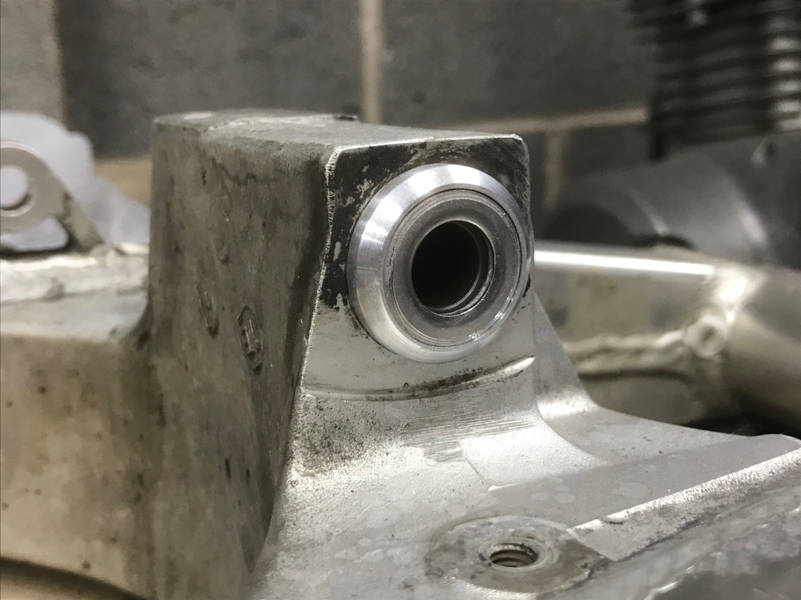 I am going to make adjustable dog-bones with rose joints for the back end, for the rose joints to function correctly I need to isolate the needle rollers in the swingarm and linkage. There are several ways to accomplish this but I have chosen to make some isolators out of aluminium (donated by the scrap ZX9R stem I had