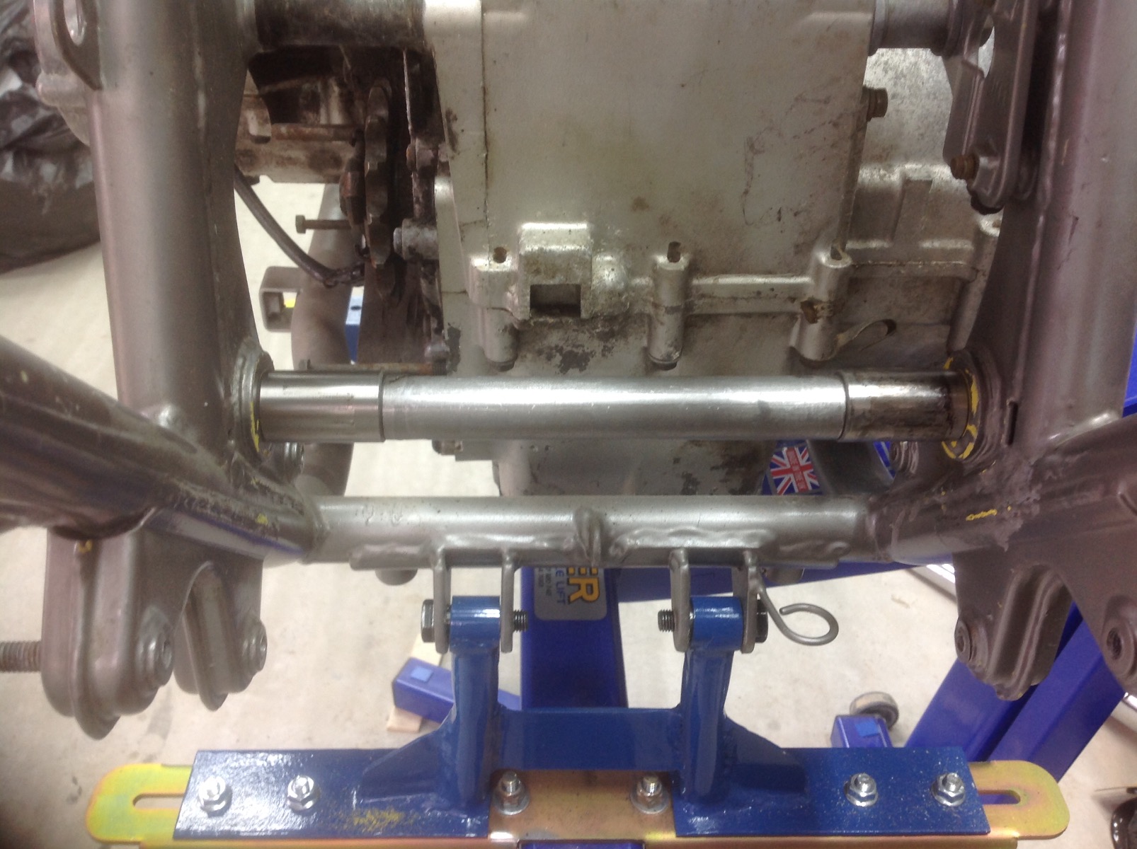 05 Jun 2022 14:09Thanks Calum, it is absolutely stable on the lift even with the imbalance of no front end. The forks do need extending, I have taken on board that Davido still has clearance issues with a Harris pipe - if I extend 75mm that will put the fork length in the middle between a "J" and a "K" so with a 17 inch wheel I should end up pretty much at stock "J" heightI guess I must have not clicked on the last e-mail notification cause I missed a whole lot of posts here!