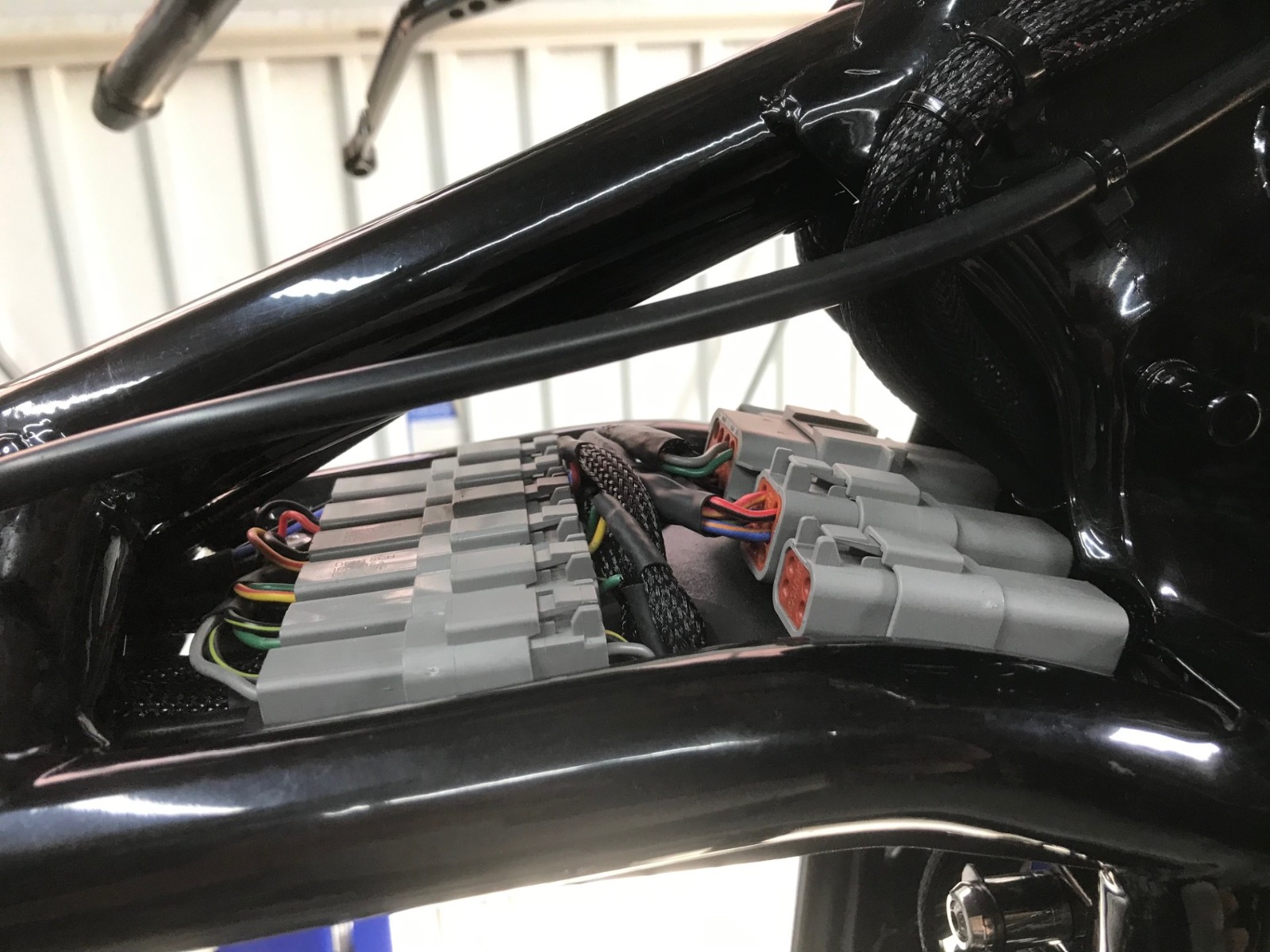 The plugs for the engine wiring sit behind the side panels (stator, speed sensor, oil pressure and neutral, pick-up coils and Lambda probe)
