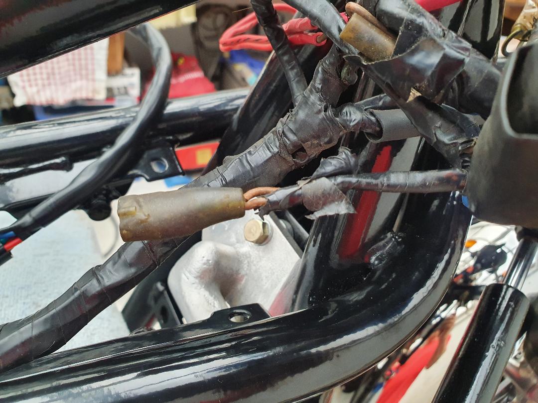 11 Oct 2022 01:25As far as I am aware the "double" brown is an accessory feed (not used) so the single brown will be the feed, the other side of the horn goes to the black wire from the switch (the switch is in the earth side) which then earths through the handlebar when the button is pushedNow another electrical question - I think i have found most connections now.