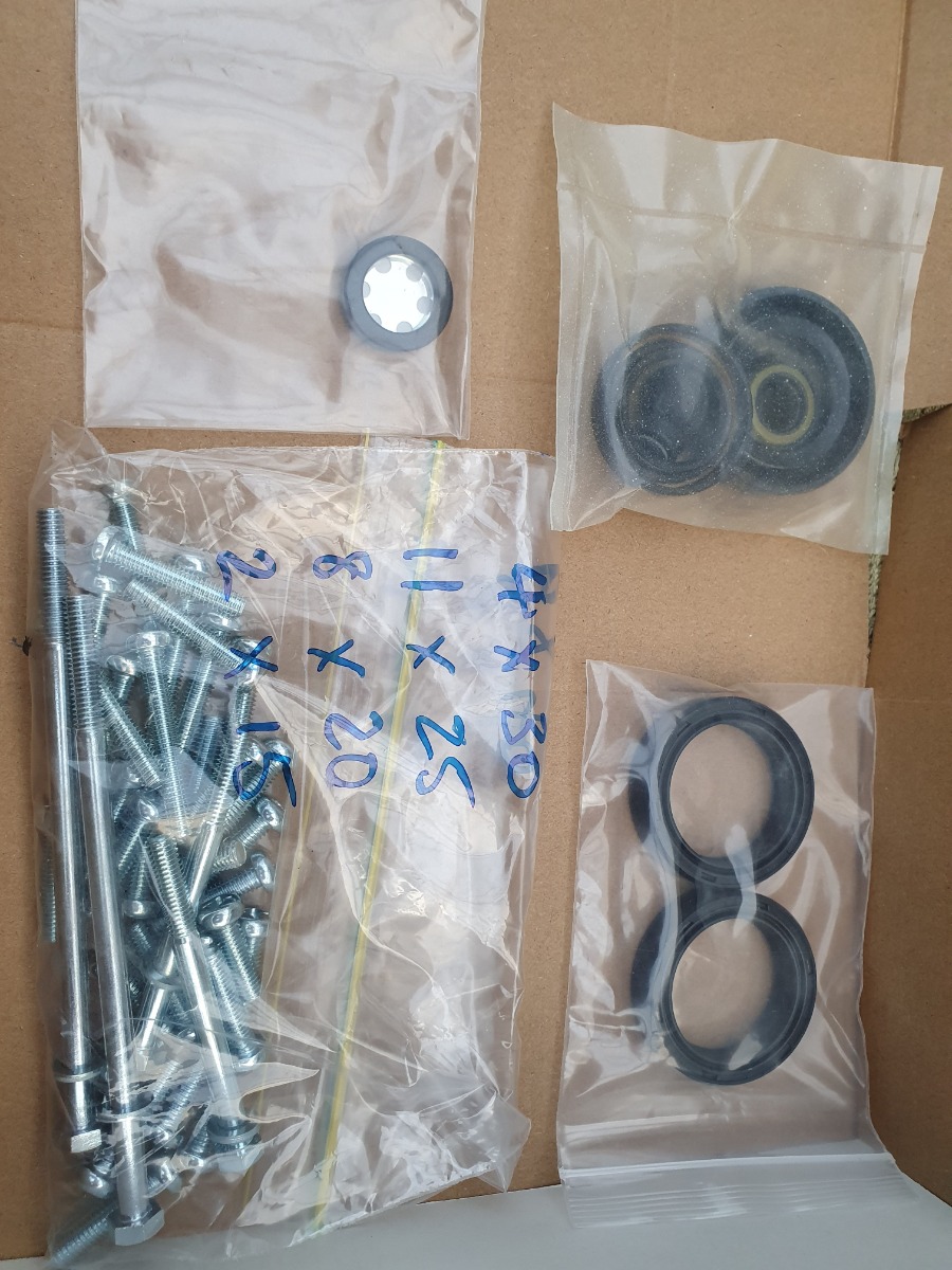 Also got some more parts, a set of cover screws in original philip head style, a packet of various engine/cover seals, a pair of fork seals and a clutch cover sight glass.