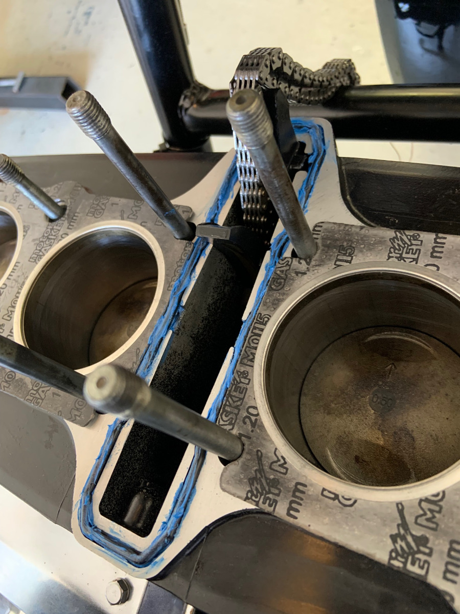 I ordered a new head gasket and a Viton high quality camchain O-ring. Will install it with RTV this time (thanks Dr. Gamma) and inspect it before I lower the head the last 10 mm.
