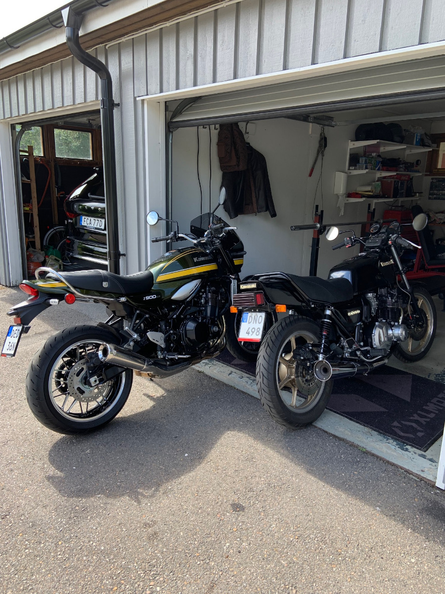 I also bought new shocks, I went for YSS ZRX 1100/1200 shocks as they are bolt on but 360 mm instead of the standard around 350 mm. The old Girling copies where 335 mm and I could not use the center stand without risking of dropping it. The travel lenght increased alot and I like the look with more air between the tire and rear frame:
