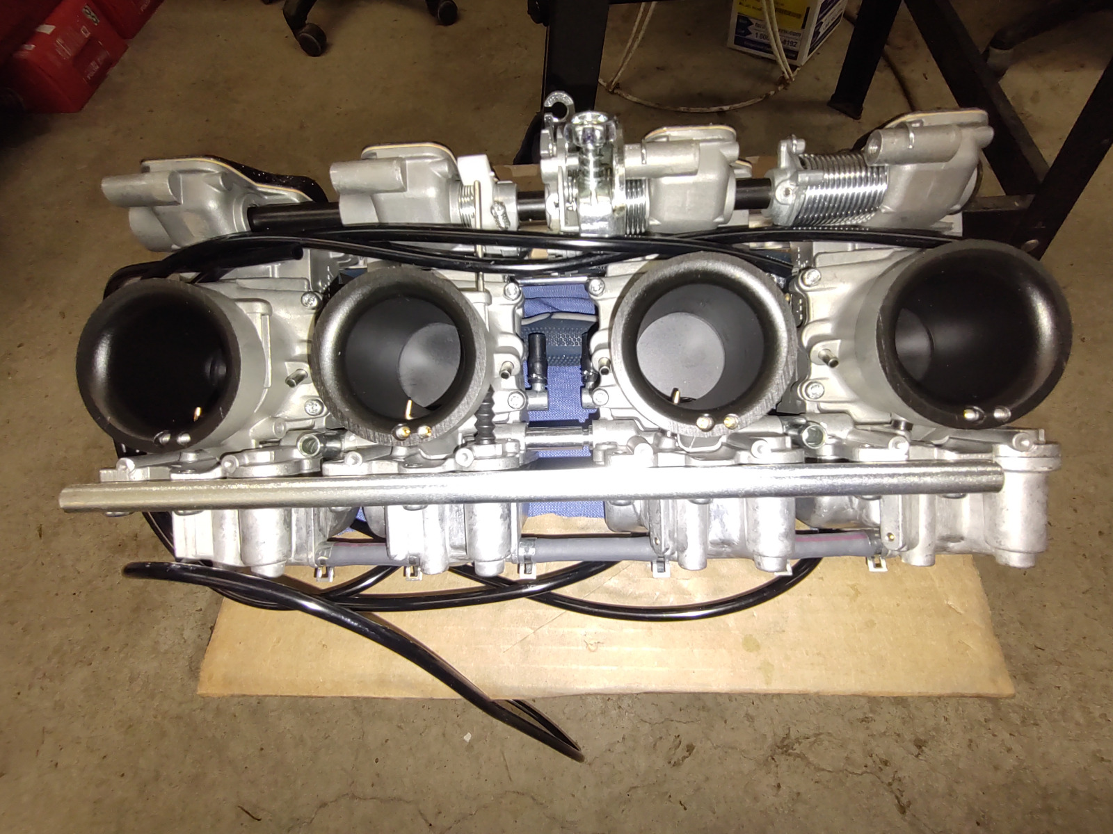 I finally finished the first fork lower. Then I figured out we got the wrong gauge mount and we needed different intake boots for the RS34 carbs. We sorted that out and got the K&N pods on the way. We also ordered a new gauge wiring harness because all of the bulb sockets self destructed pulling them out of the broken gauge mounting bracket while pulling out of gauges from the broken gauge mount.