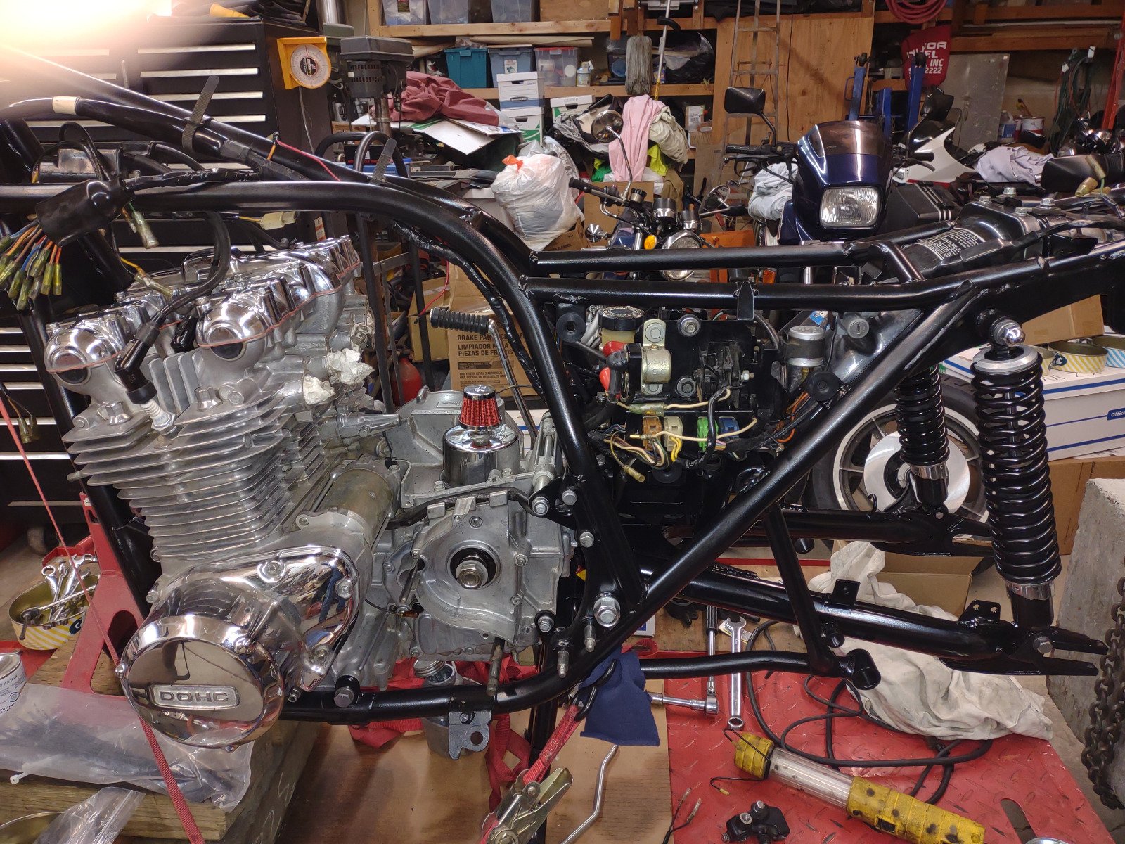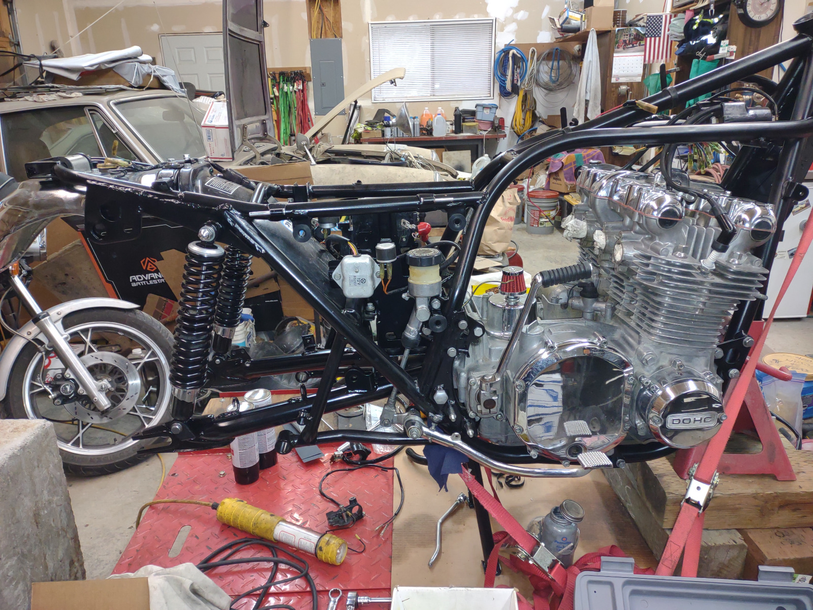 Looks good so far. If you're planning on fitting a stock exhaust I think it is going to interfere with your center-stand which is why the LTD never came with one. I had a '78 until 5 years ago and made a rear axle lift as it is a pain not to have a center-stand, but trust me, they do look way better without one.