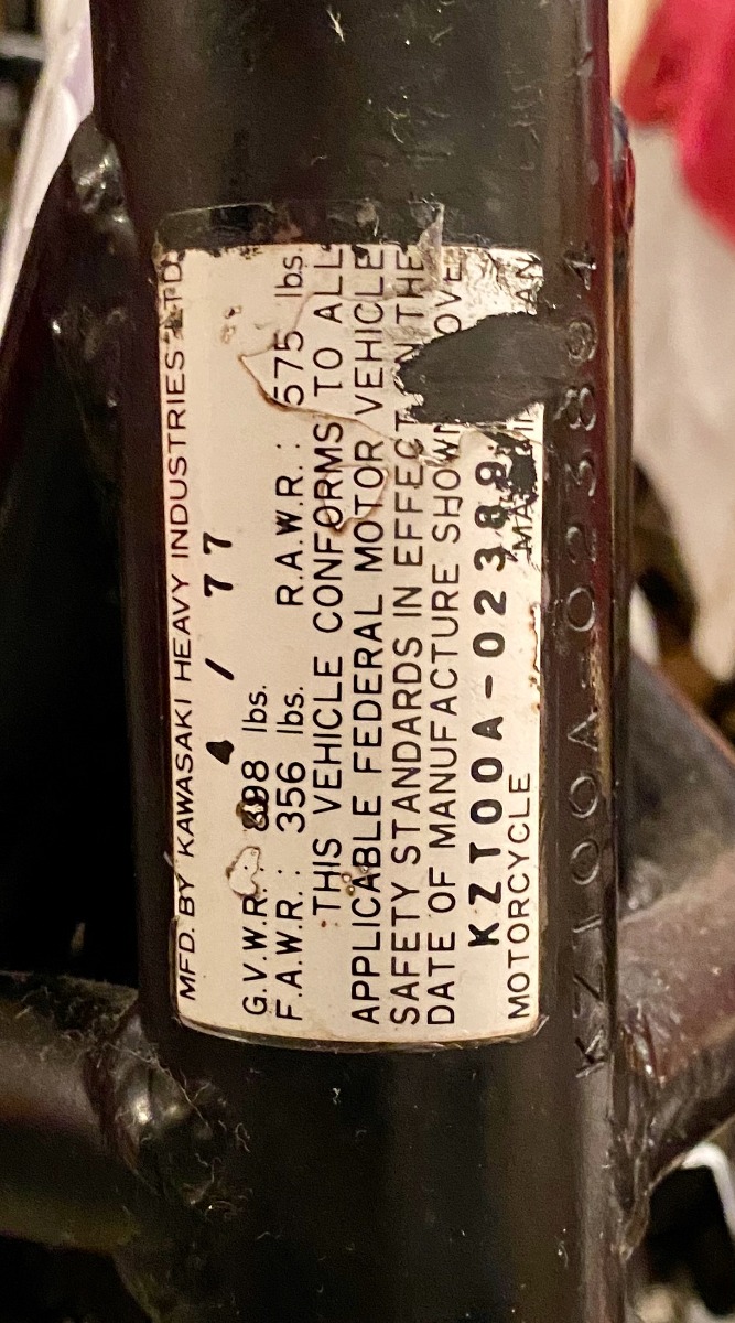 Re: Trying to Rescue a Late 1970s (1977??) Kawasaki KZ1000