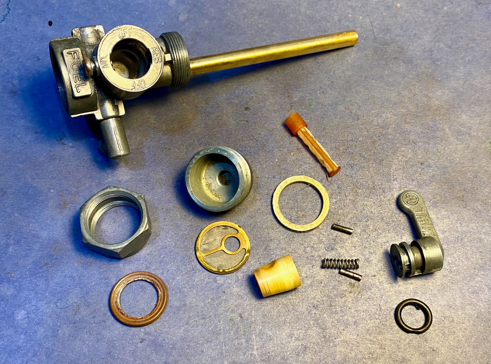 Here's the petcock disassembled and cleaned up.