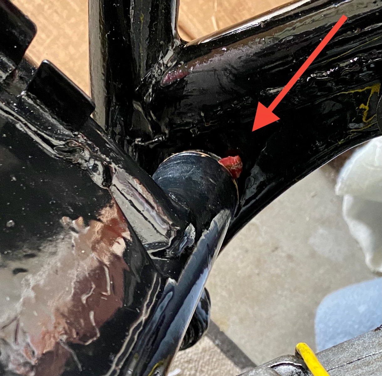 Swingarm installation went well with a very "cool" fit in the frame at the pivot.