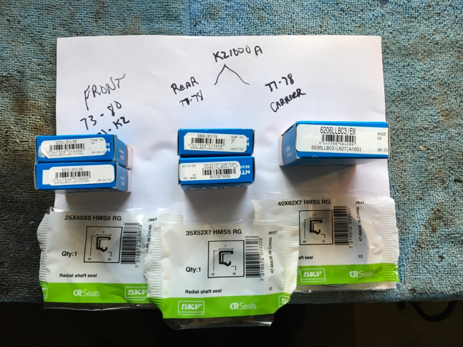 Here’s the bearing and seal numbers. Go to a bearing wholesale like “Bearing Services”. You can get better quality for a few dollars more and same day pickup.