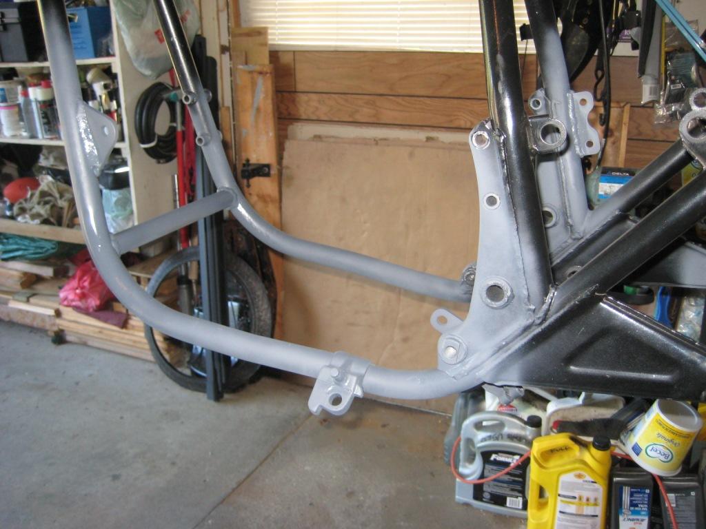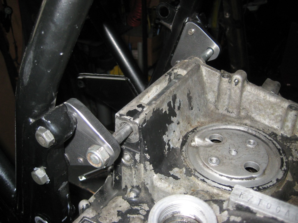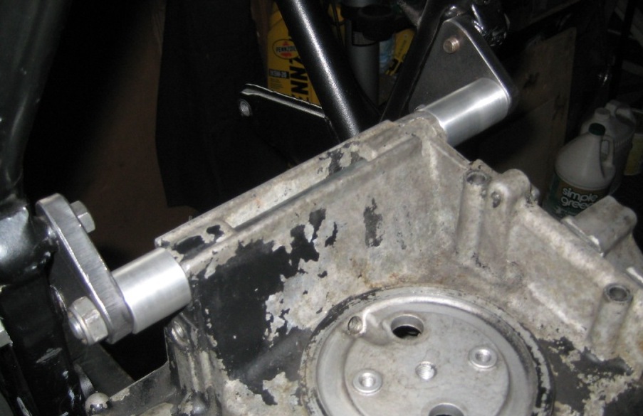 The rear upper motor mounts points at the frame were not changed but the motor mount bolt position was lowered about 1/4" from the stock location. I was told by a frame builder that these rear upper mounts are the most important mounts for a Z1 engine.