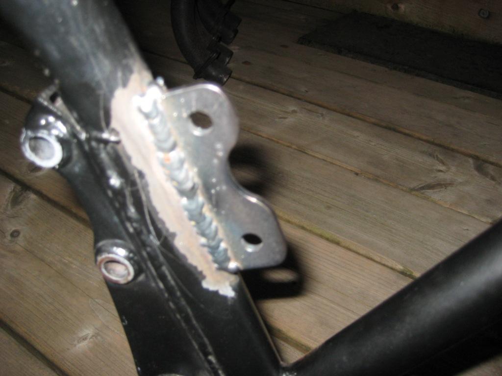 Here you can see I recreated a new switch mount tab for the rear brake lever to go on the new thicker rear upper engine mount plate.