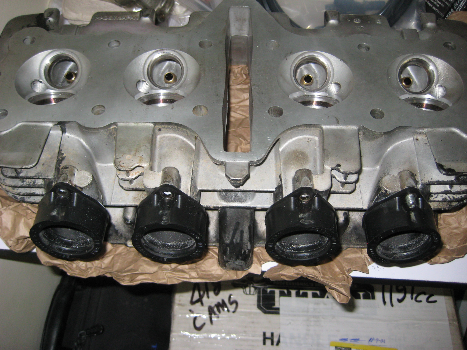 The cylinder head is ready to go except the cam pathways need to be ground. Its has been decked slightly.