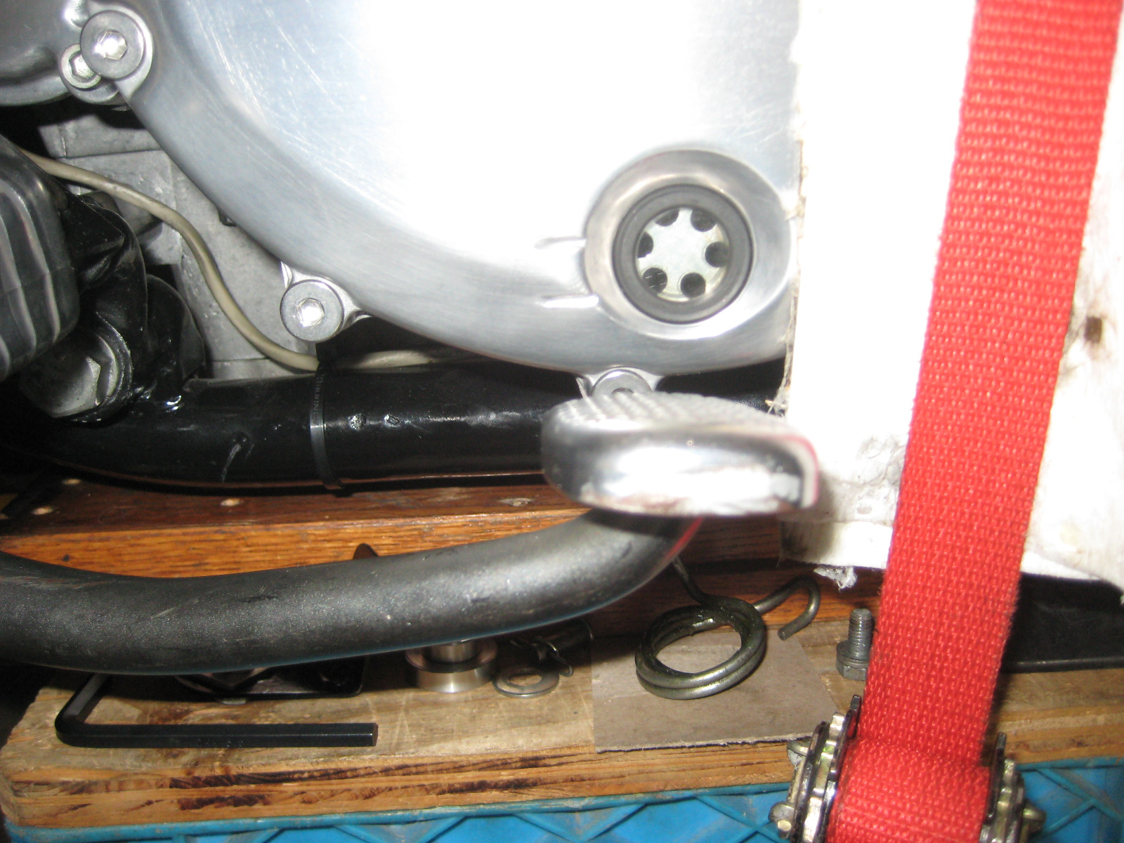 I also cut the inside edge of the rear brake pedal then got it bolted down. When I mocked it up last time I did not have the spring wound properly so it was not sitting at the correct height.
