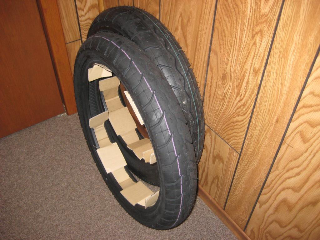 Bought some replacement tires, Shinko 230's front and rear. Price was right and they seem better than what I have on the rims currently.