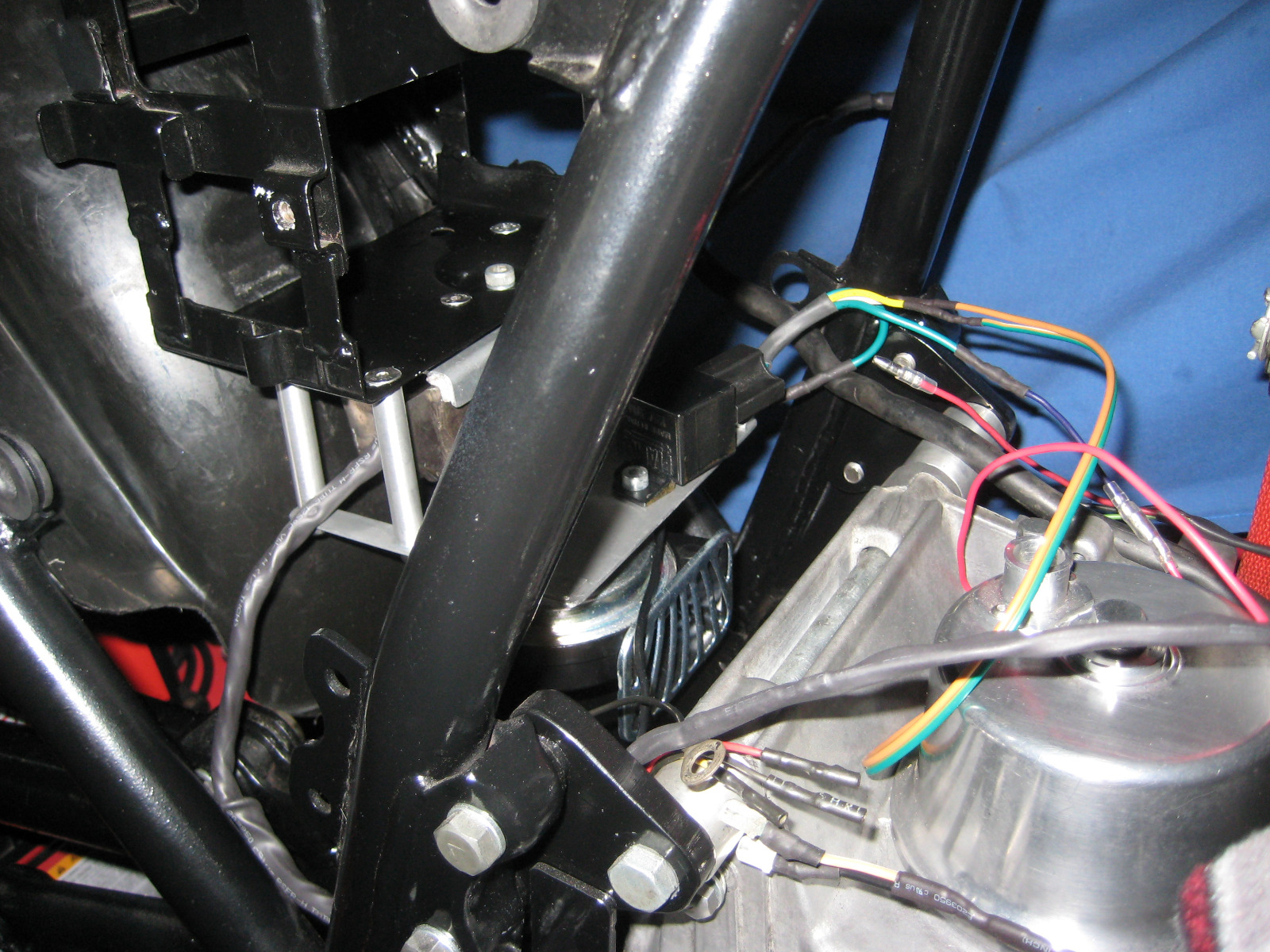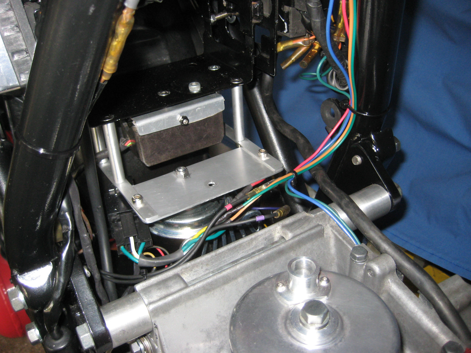 I know there is no room to push it up under the neck gussets so I decided to mount it below the battery box under the air box just behind the engine.