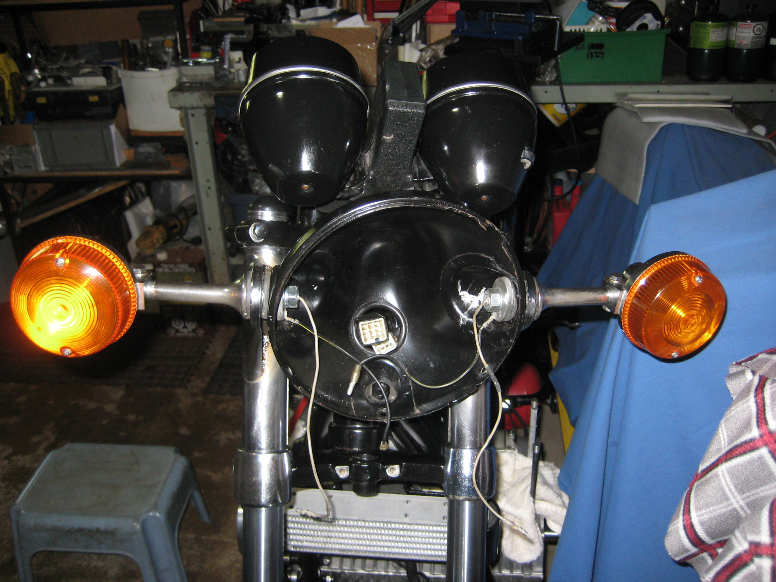 I did some more assembly today, got the forks and front fender installed along with the headlamp shell.