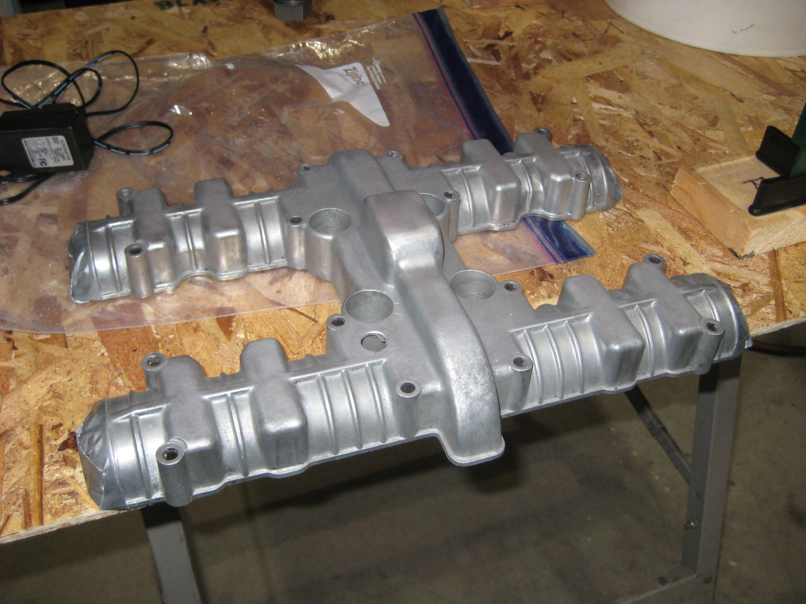 Got going only to find that the media was clumping in the transfer tubing, tried to throttle the incoming air and switching up supply air PSI to no avail. Was getting a tiny bit of the test piece (cam cover) cleaned but not as good as expected. Decided to run out to the hardware store and get a ball valve to restrict the media flow which helped somewhat.