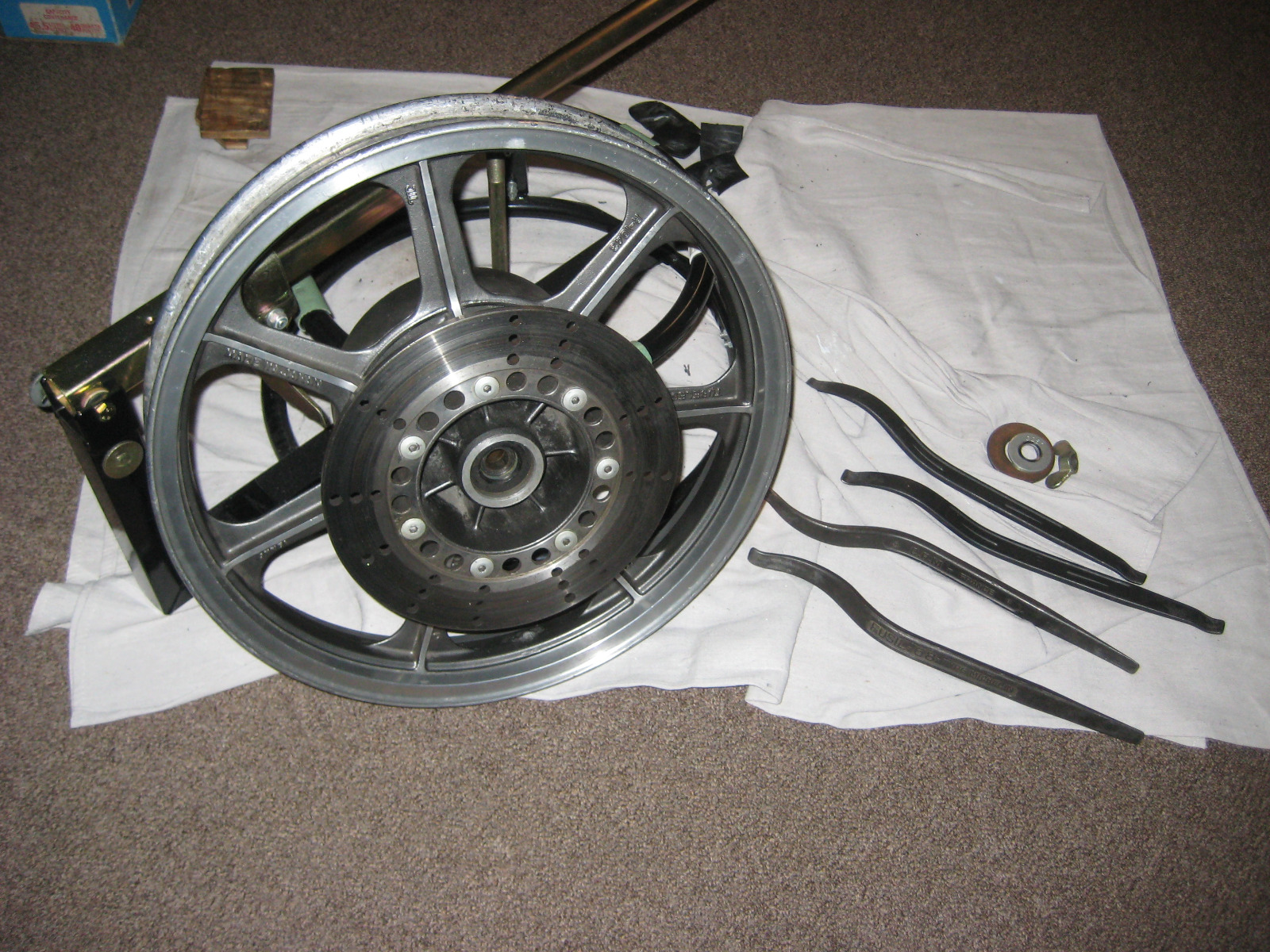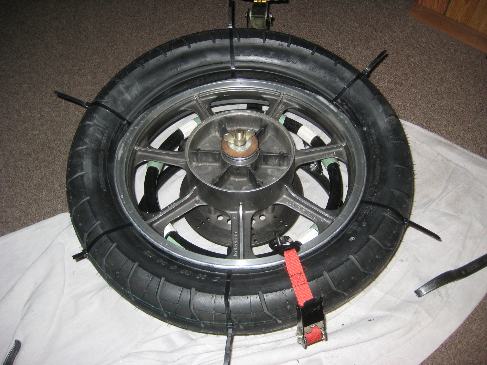 I just got back to working on this project today. I was able to remove the rear tire from the rim and will have a new one mounted soon.