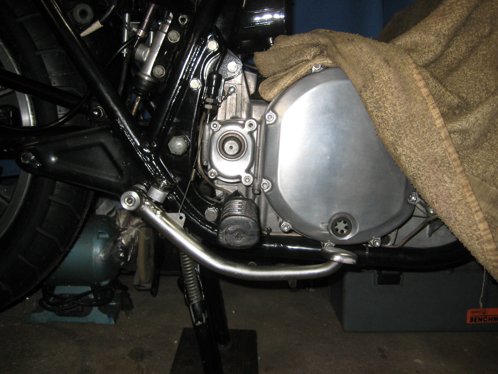 Got the above two jobs completed before moving the bike to get to the other side. Have to do a juggling act because there is a car normally parked directly in front of it most of the time.