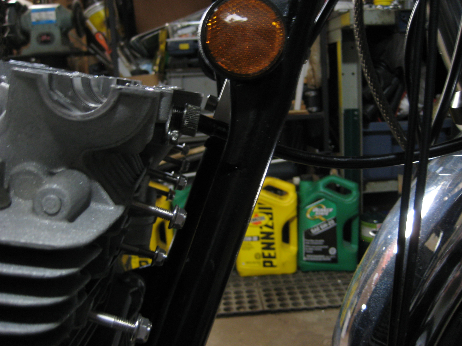 Never had the head on and bolted down until today and positioned the cooler as far up as I could without the fittings hitting the triple tree or fork legs.