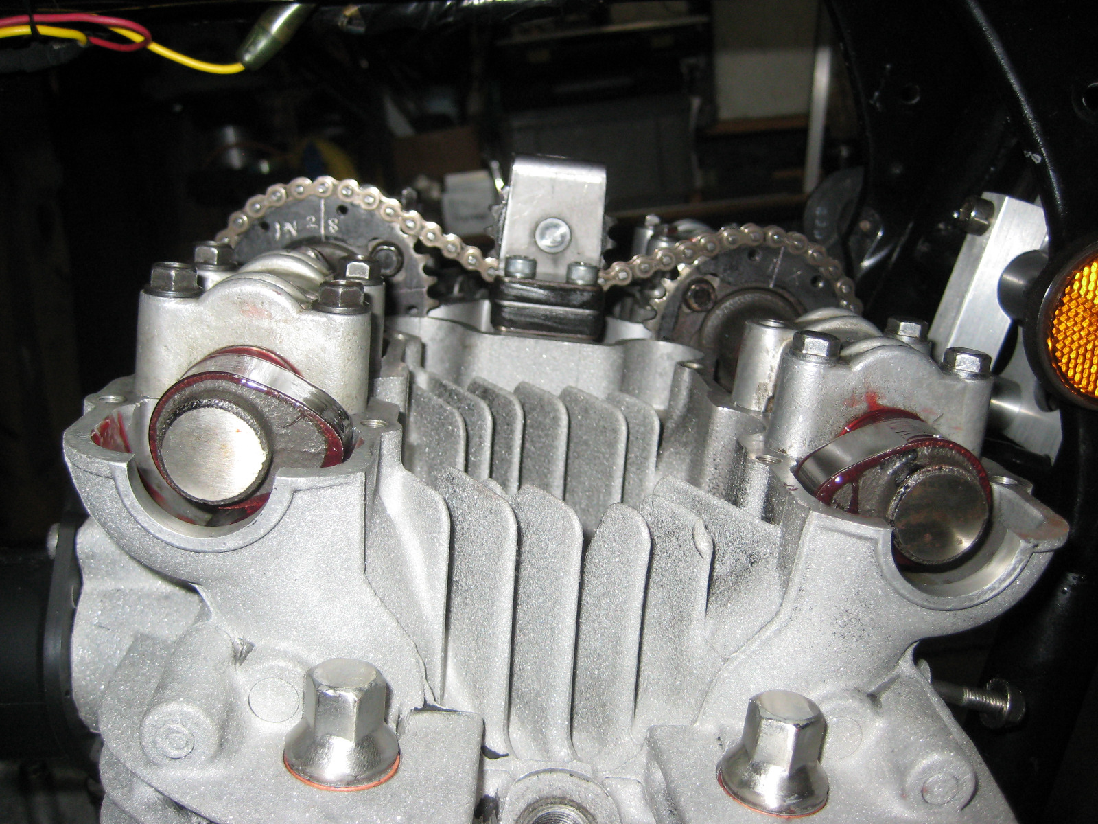I got back on this late yesterday. I had to relieve the cam cover edges and cam cover gasket by about .040" to match the cylinder head, a task that was overlooked. I got that grinding done before I removed the bike cover to proceed on the cam timing.