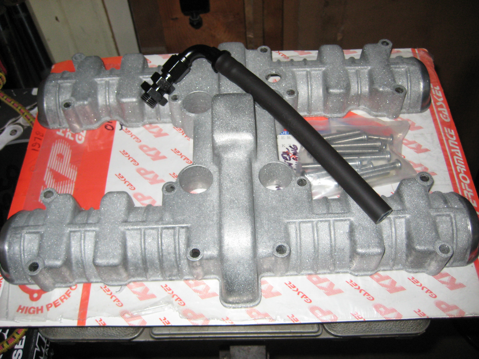 I also need to plug one hole in the catch can that was relocated to the underside. Used some tape on the inside to seal it, then plugged smooth with JB Weld. The catch can is a drain back system so it does not need to be emptied.