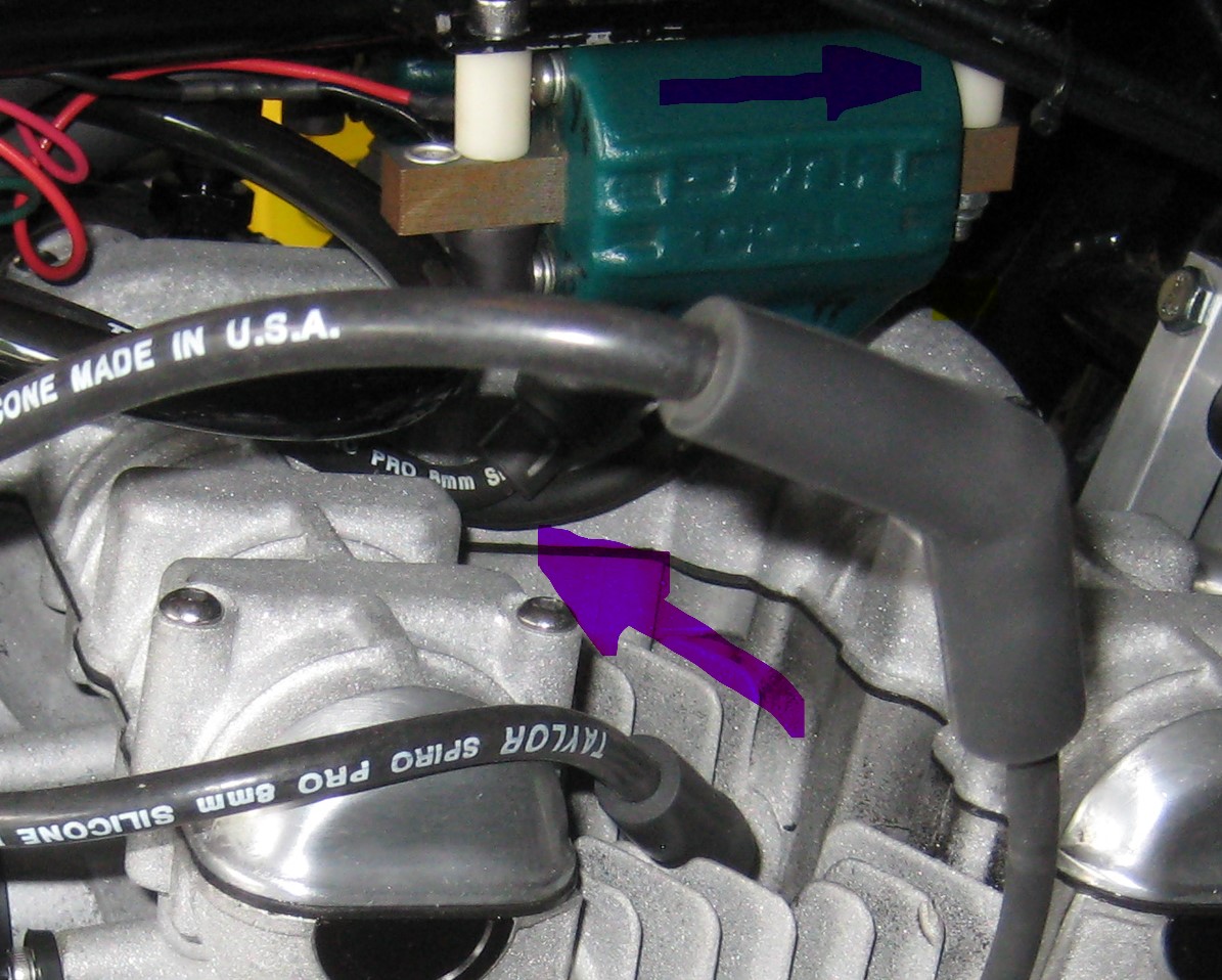 It would be better if I had 90 degree end terminals on the wires coming off the coil, but I don't want to redo all the ends. The other issue with the wires coming out to the side is that they would interfere with the spark plug boots.