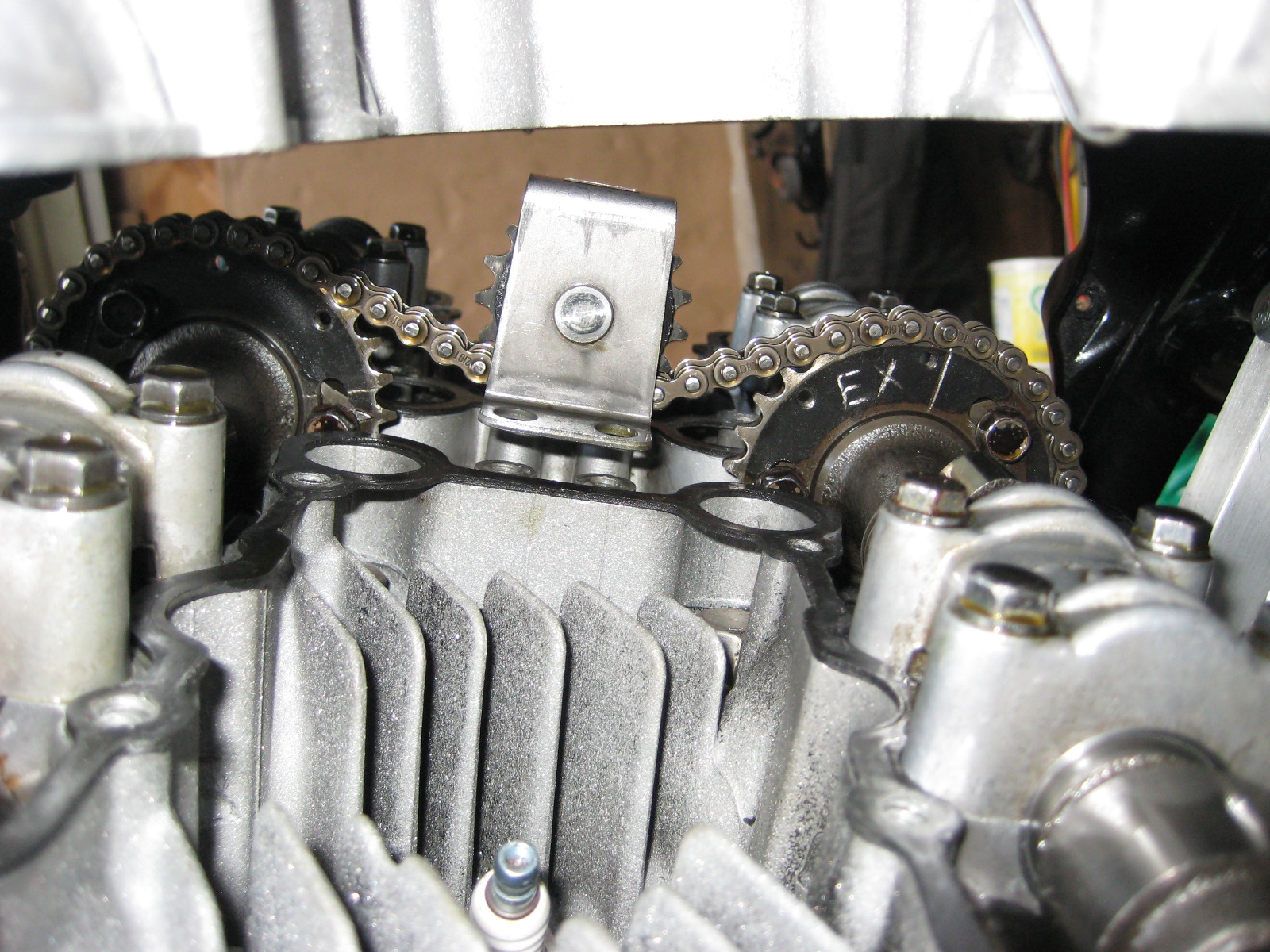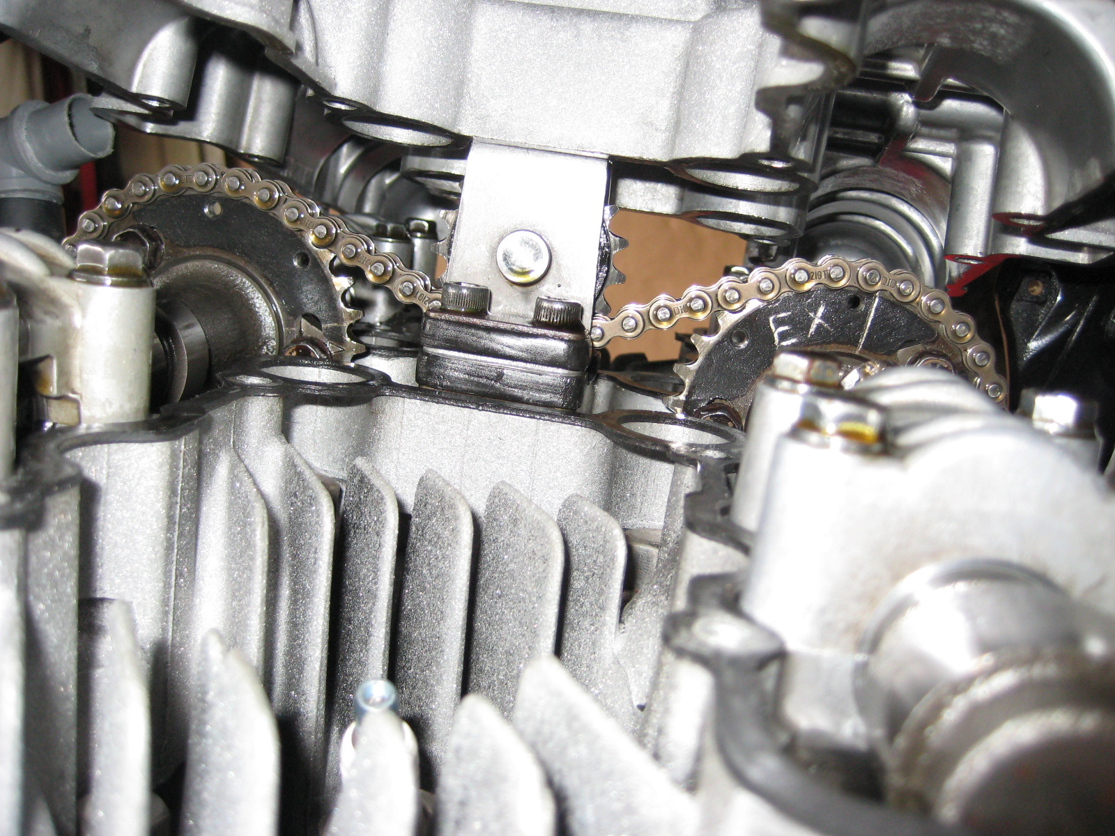 This is the extent that the cam cover could lift up, locked in there by the very top of the center idler bracket.