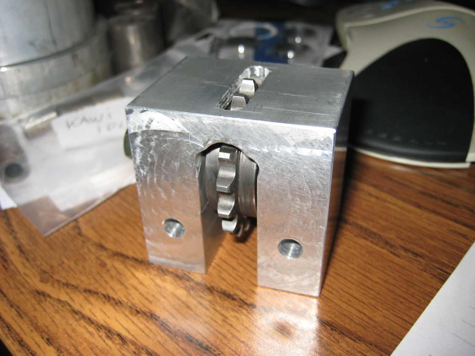 I was able to get out in the garage today for a short time so I did the angle cuts for the sprocket clearance then cut the top slot where the sprocket teeth stuck thru.