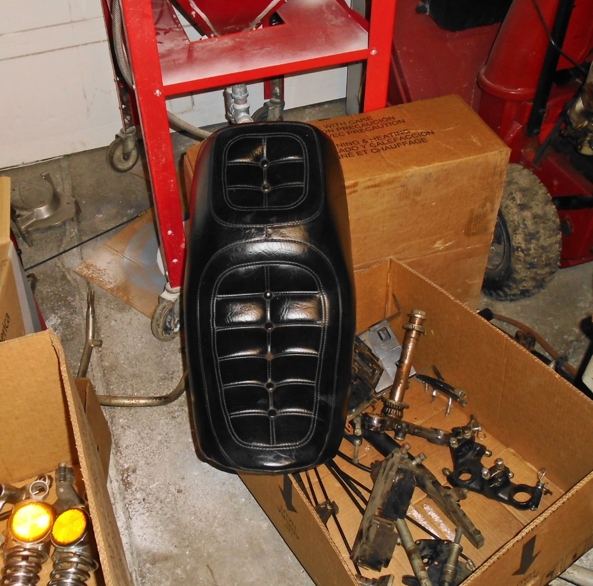 Then a Beautiful! 78 Tank, side covers, tail. Painted black. perfect plastics! No cracks on anything tank is fine! The flat bolt on petcock style.