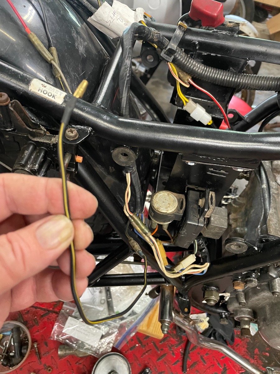 I'm sure it does, I just don't know where...the only thing I can think of is, in the schematic it looks like it may attach to the battery ground that comes off the Negative battery post, a part I'll have to make...I have the rear turn signals connected to their black/yellow wires and that stray wire looks like that's the only thing with a B/Y wire I don't have connected, and that does feed into the main wiring harness...