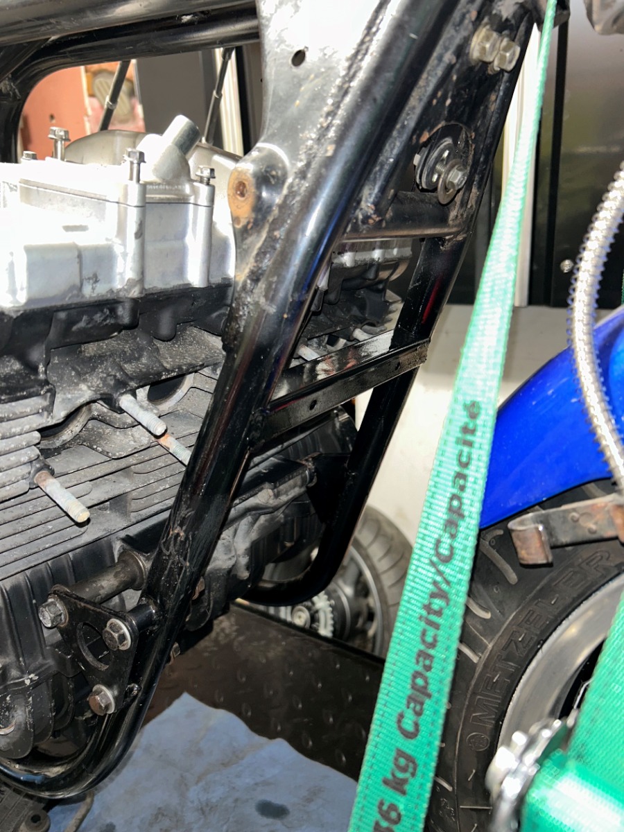 By instaling the swing arm and the upper and lower frame tube from the ZR7 i keept the output shaft of the ZR7 so now the enginge fit without no modification