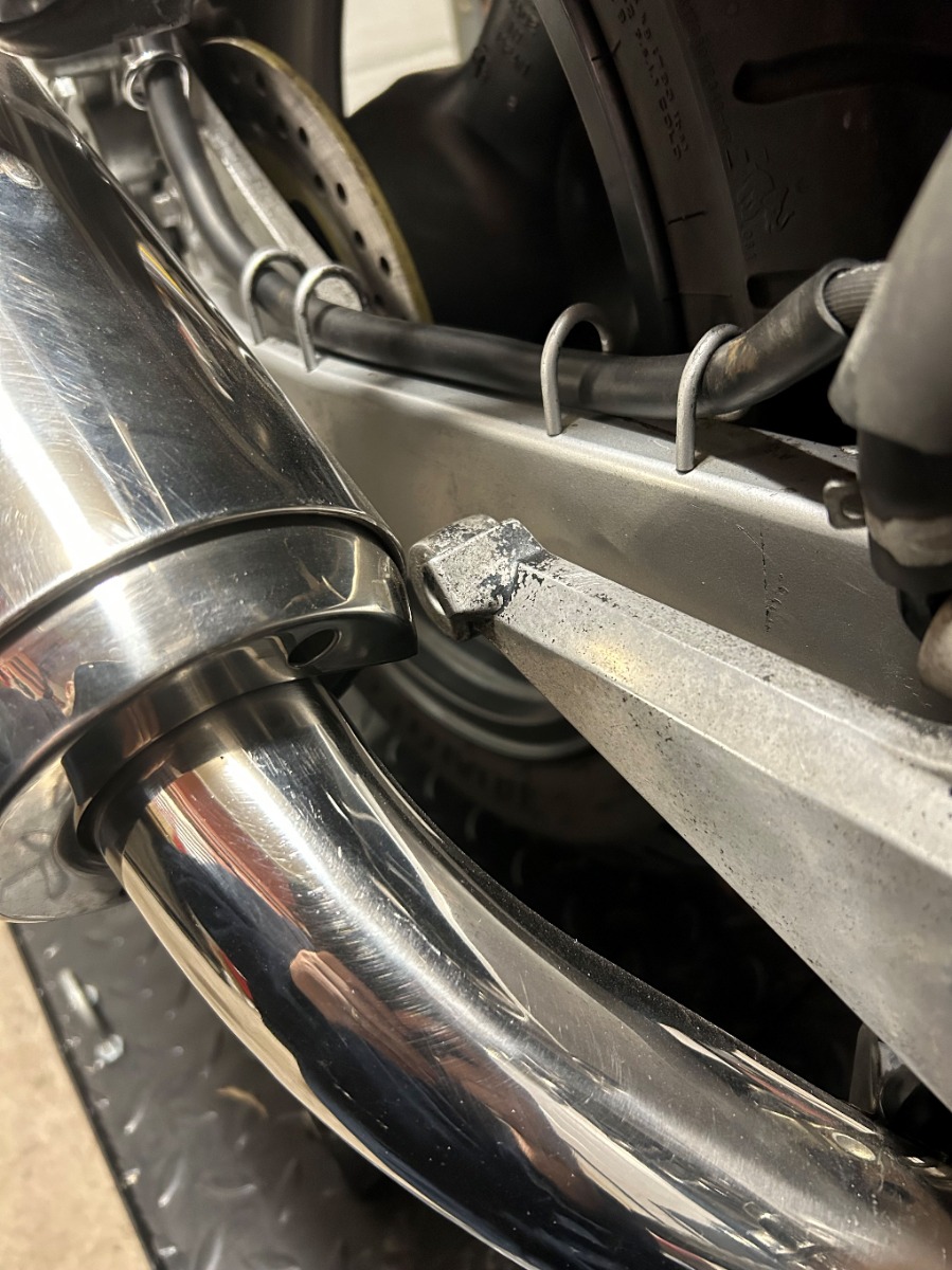 Now that the engine and the rear suspension are fitted togetherwith the frame, I wanted to see what the ZR7 exhaust will look like on the bike.