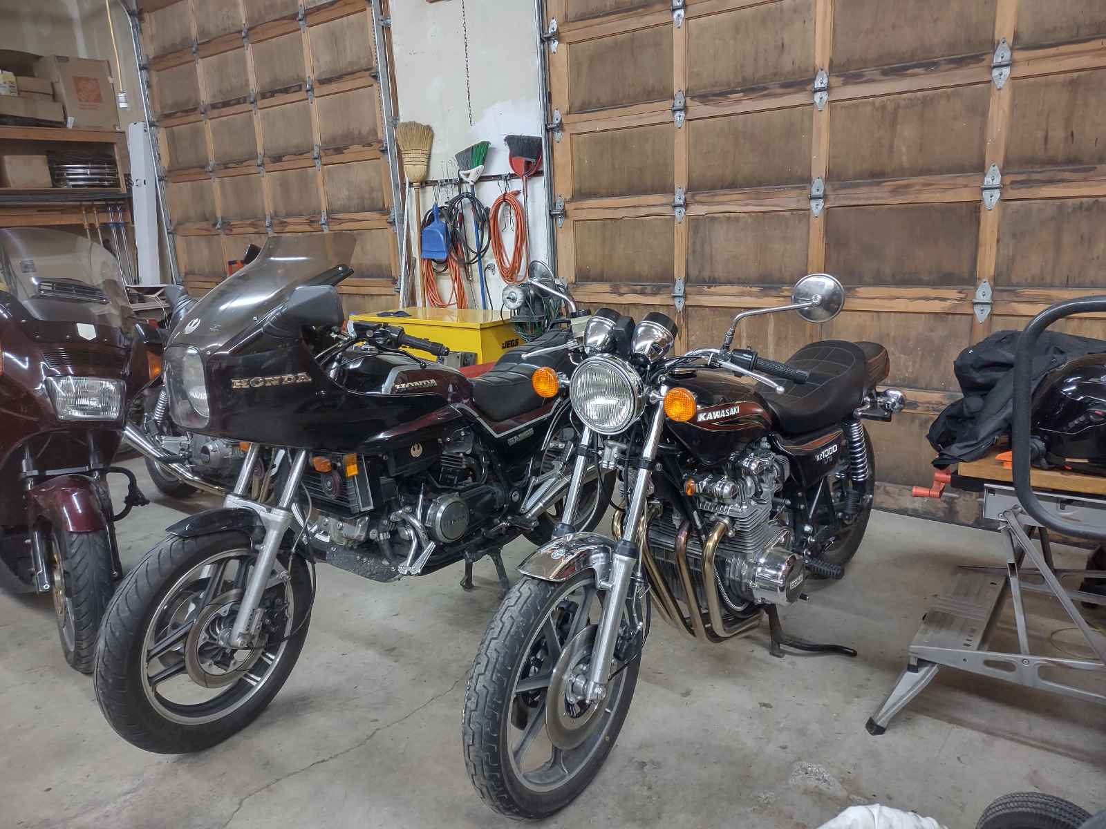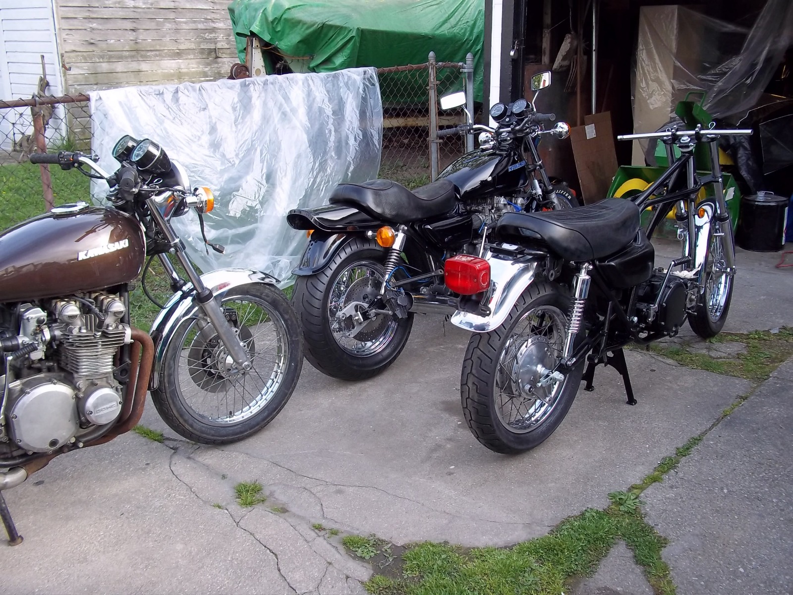 Last year we pulled the motor from the 77' KZ 1000 LTD to paint the frame, it was just too crusty. We replaced wheel bearings, seals and rebuilt all the hydraulics. I'm still running the original paint on the bodywork. I also moved the front turn signals to the headlight mount. It has 34k miles on it and runs great. I also installed Mikuni RS34 carbs and a Delkevic exhaust system because the original Kerker header had given it's all.