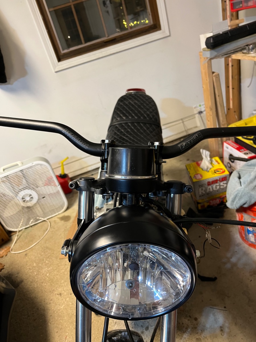 The Pig is mostly put back together, and she started right up. Now the fun part of trying to get new components that hopefully enhance the look and function of the bike. Turn signals ordered but I am still trying to sort out the headlight.