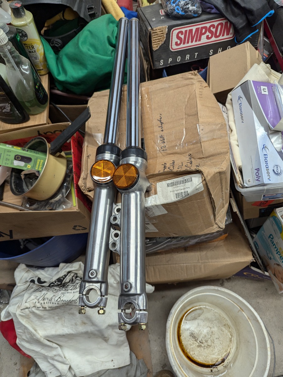 Finally a little more progress. Forks done, front and rear wheels built. Top end on the engine finished and now got the engine in the frame. Disregard those nasty side covers on the engine. They were just old spares I put on in case I scratched something.