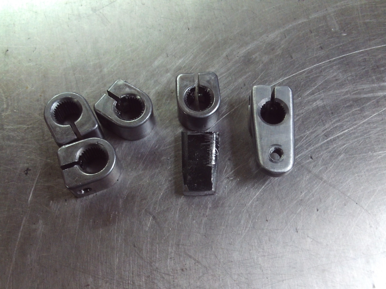 The splined linkage arm is home made using one of these bought splined knuckles which was later zinc plated.