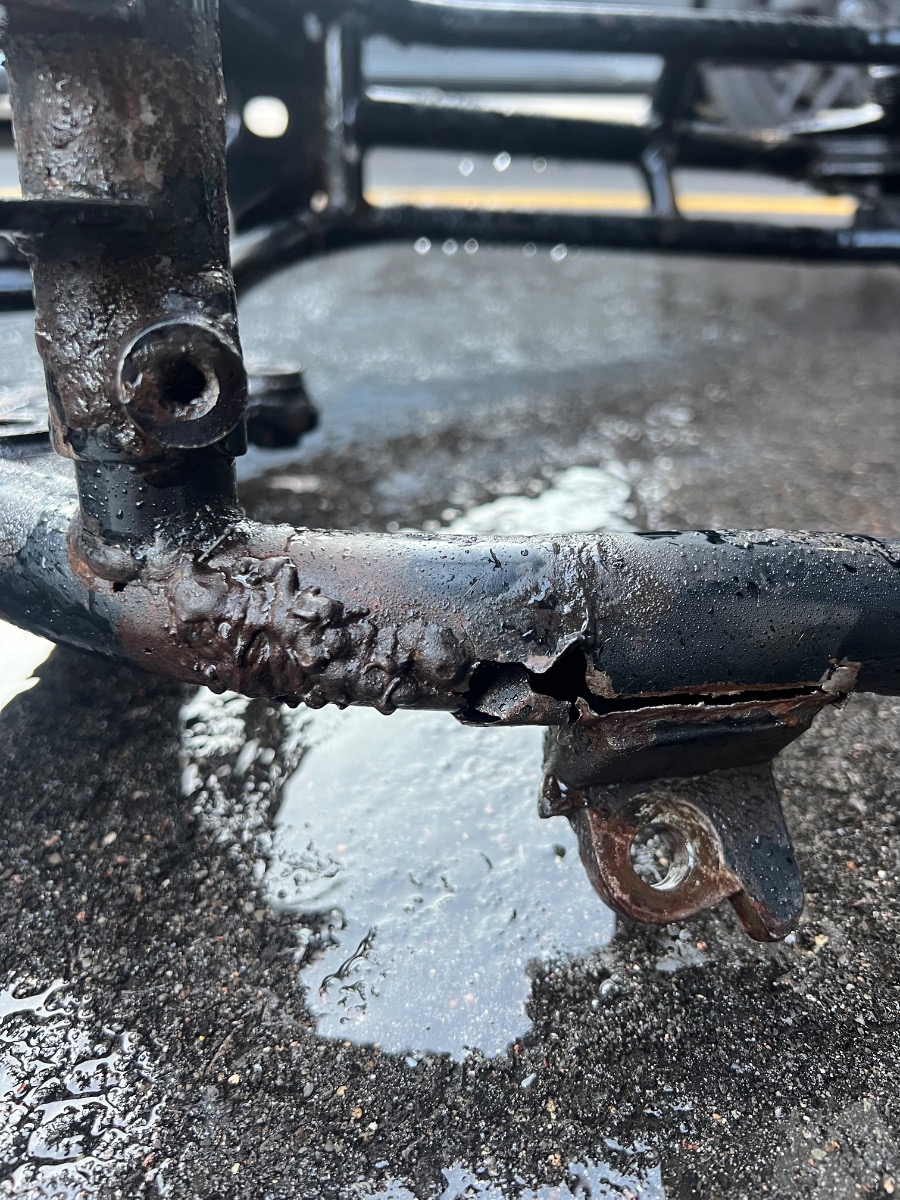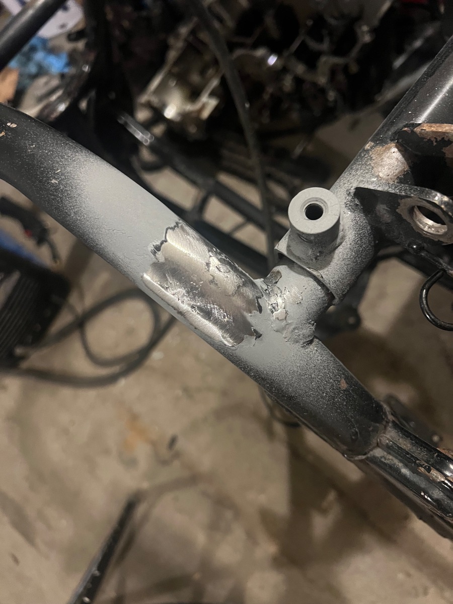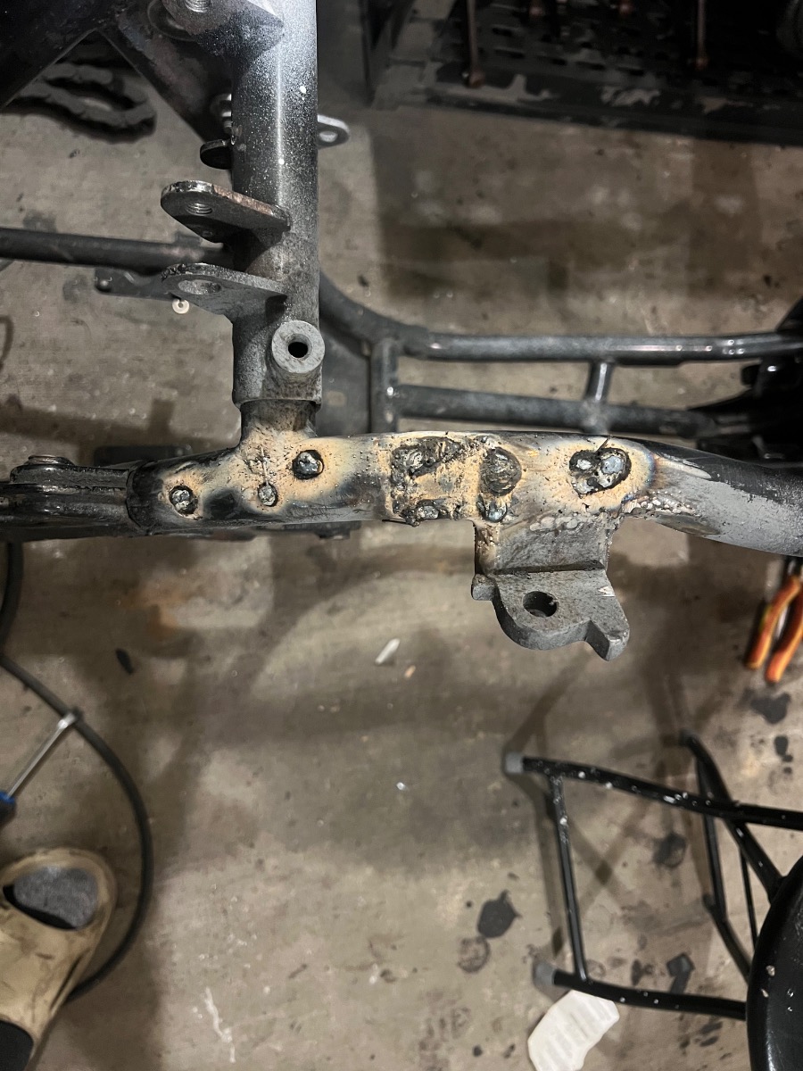 Once I had the bare frame, I started cleaning it and noticed another reason why the bike was sold to me lol. I have never seen a worse welding job and I'm not even that good of a welder . A good excuse to pull out the welder though! I started repairing the frame!