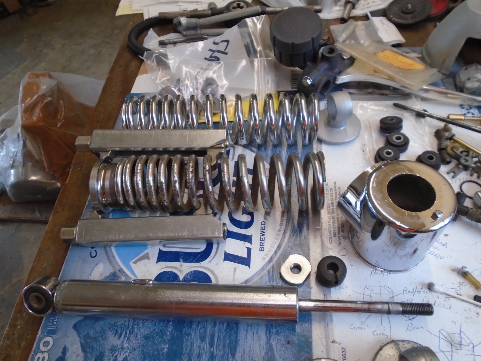 Looking Great Matt, coming right along!! Actually, stock rear LTD shocks weren't chrome at all. Only chrome bit was the spring adjuster and polished aluminum top spring keeper on top. They were Made by Mulholland and used starting in 1976 on the LTD900. Then used in different single spring and duel spring configurations up thru the 90's on the P bikes. So..actually those black spring KONI's look more "stock" then the ones that came with it. I rebuild the original shocks for all the 900-1000's and have the chrome rechromed and the black re-powdered. Shown is an LTD900 1976 i'd finished last year, note the shocks on it. Anyway, just rambling. Keep going till you are happy with it!!