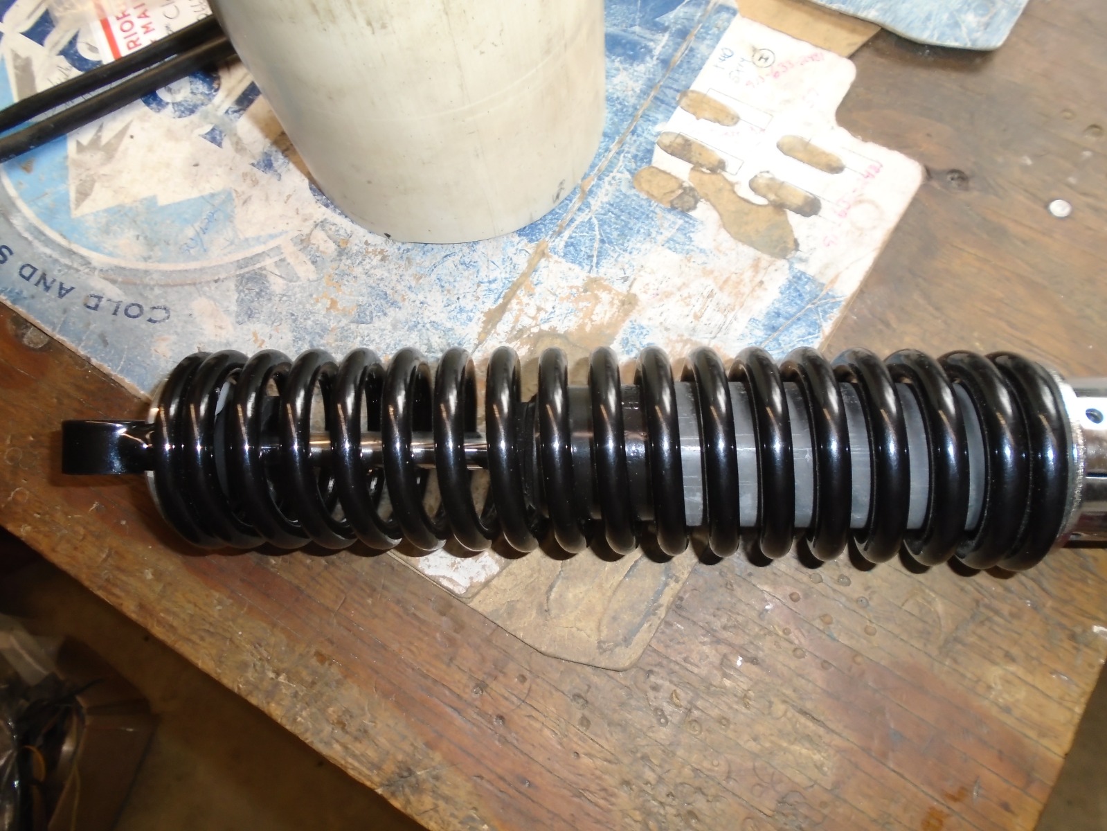 During the recent inspection / repairs, I took the opportunity to clean and grease the clutch actuator. The bike still has the original worm-gear style or whatever you'd like to call it, and the cable was quite dry and crispy. I replaced the clutch cable and gave the actuator and cable the proper adjustments. There was a lot of play and slack, so this was a much-needed repair. I went for a ride over this last weekend, and the clutch now feels great. Upon taking off, it hooks up hard, and shifts are as crisp as a Granny Smith! The bike is really starting to feel like something with some muscle, but the stock rear shocks were giving that 1970's station wagon type of feel to the ride. They needed to go. Luckily, I had a set of nice Koni 7610's sitting on my bench, waiting to go on something. I do have to admit that I liked the look of the stock chrome shocks better, but the improvement in ride quality is what really matters here. Maybe one day I'll look into a set of chrome springs for them... For now I am happy to not be bottoming out on every big bump in the road!
