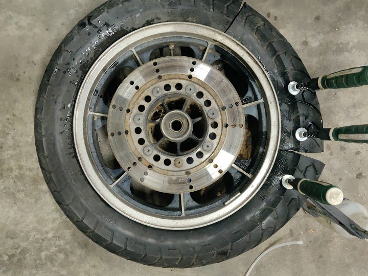 Wheel bearings removed. These wheels will have to get repainted due to chipped paint.