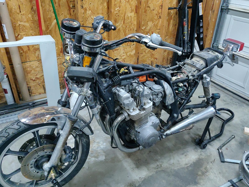 This is how the bike stands in the garage today. I'm impressed that the chrome is actually in pretty great condition.
